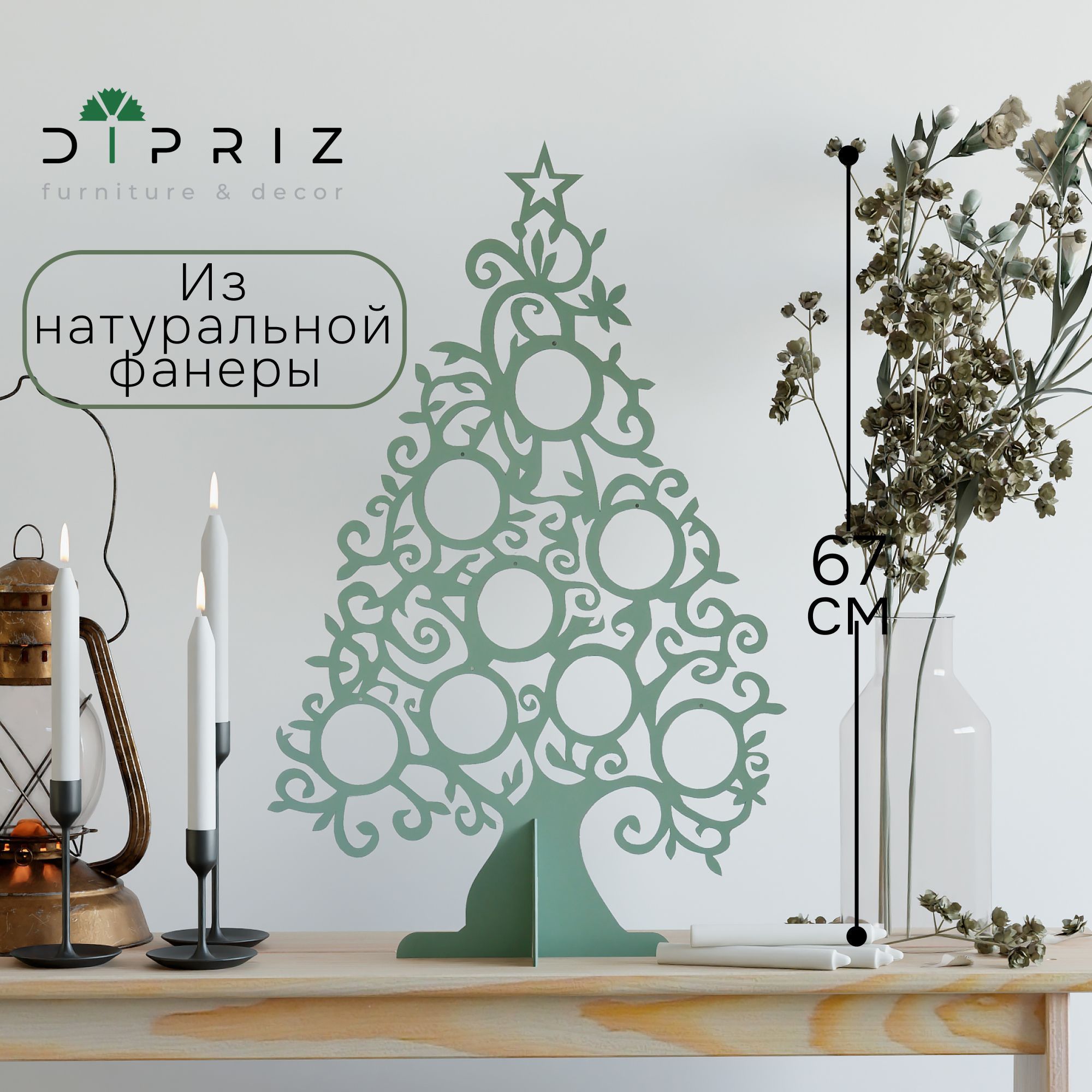 Настольная новогодняя елка из фанеры, цвет эвкалипт