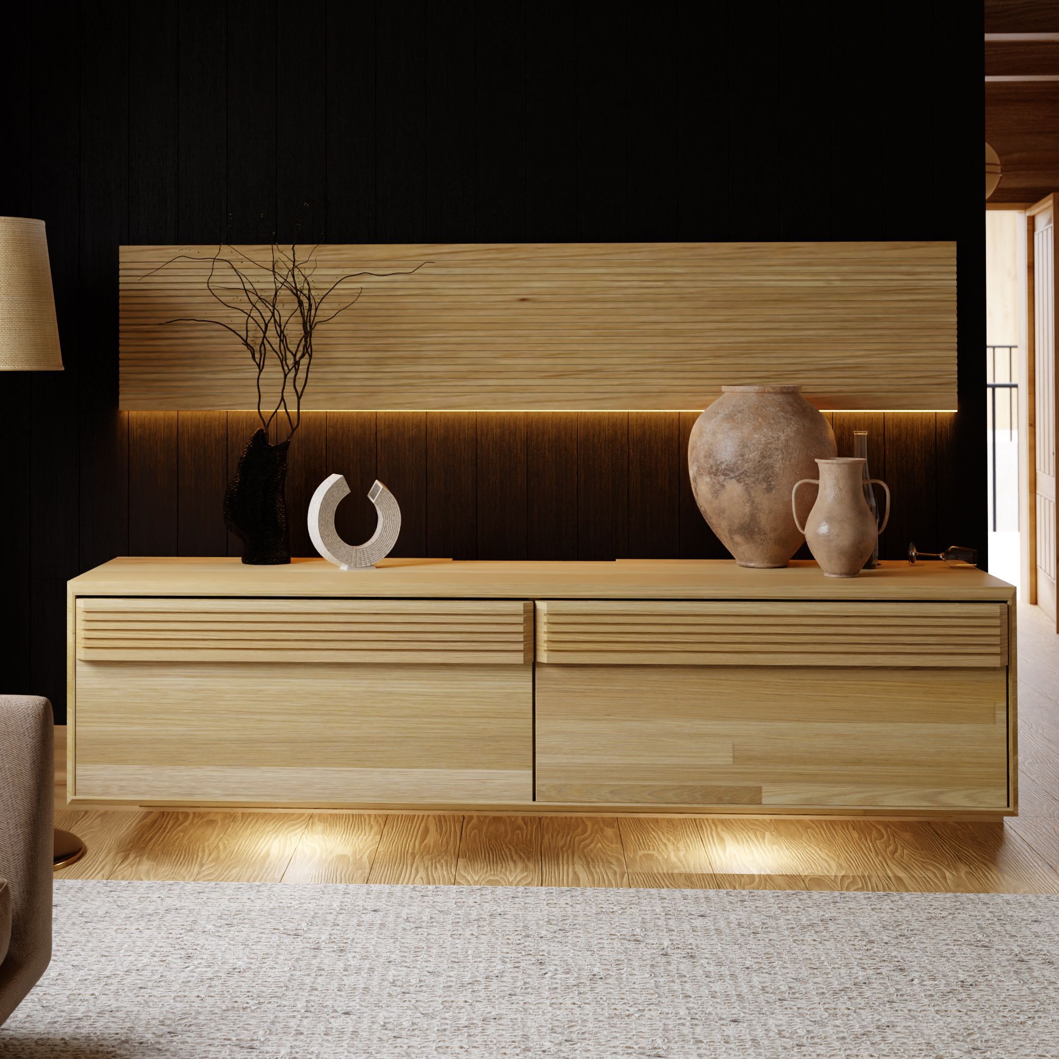 Серия предлагает вам выбор в установке мебели. Каждое изделие можно установить как настенно, что создает ощущение свободного пространства, так и напольно, что придает дополнительную структуру и стабильность. Этот дизайнерский прием позволяет вам настроить гостиную под ваши потребности и вкусы.