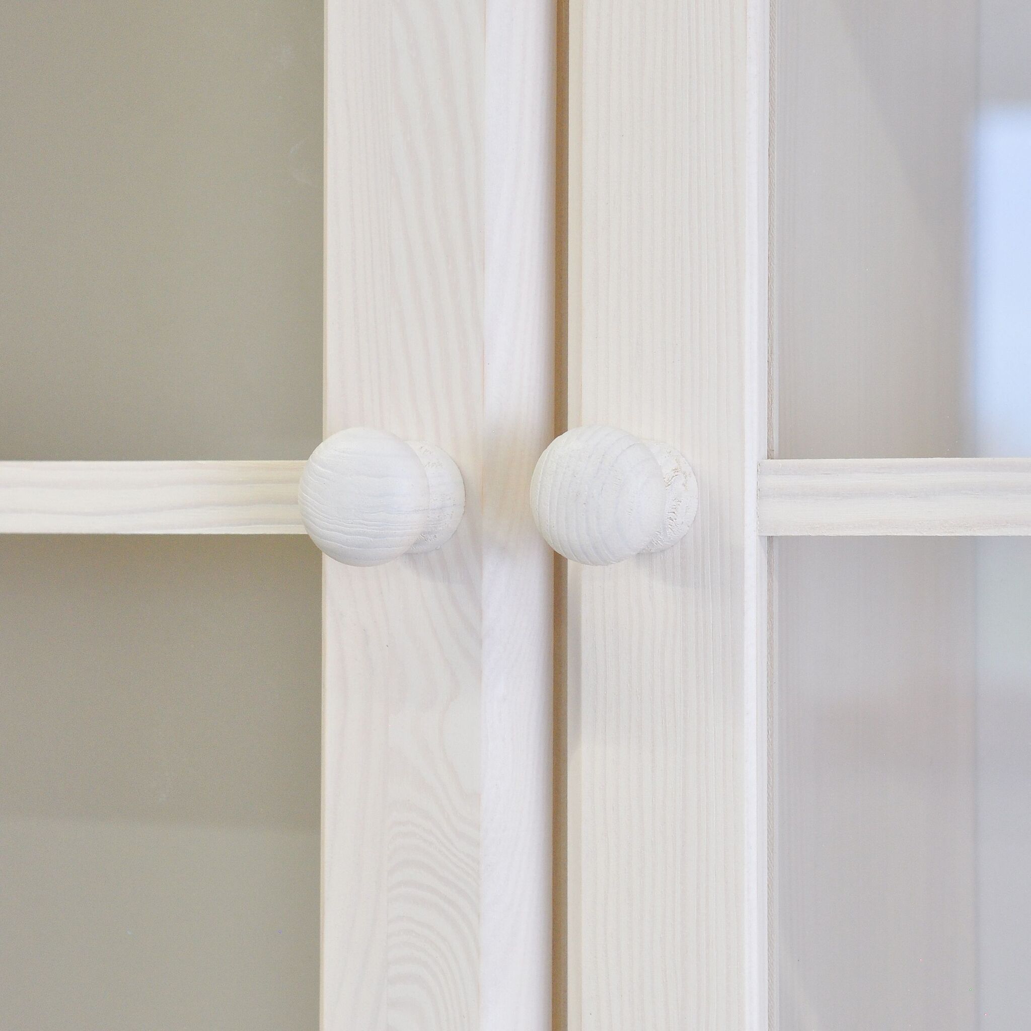 Шкаф из натурального массива сосны в скандинавском стиле с декоративным карнизом и стеклянными дверями создаст атмосферу уюта и элегантности в вашем интерьере.