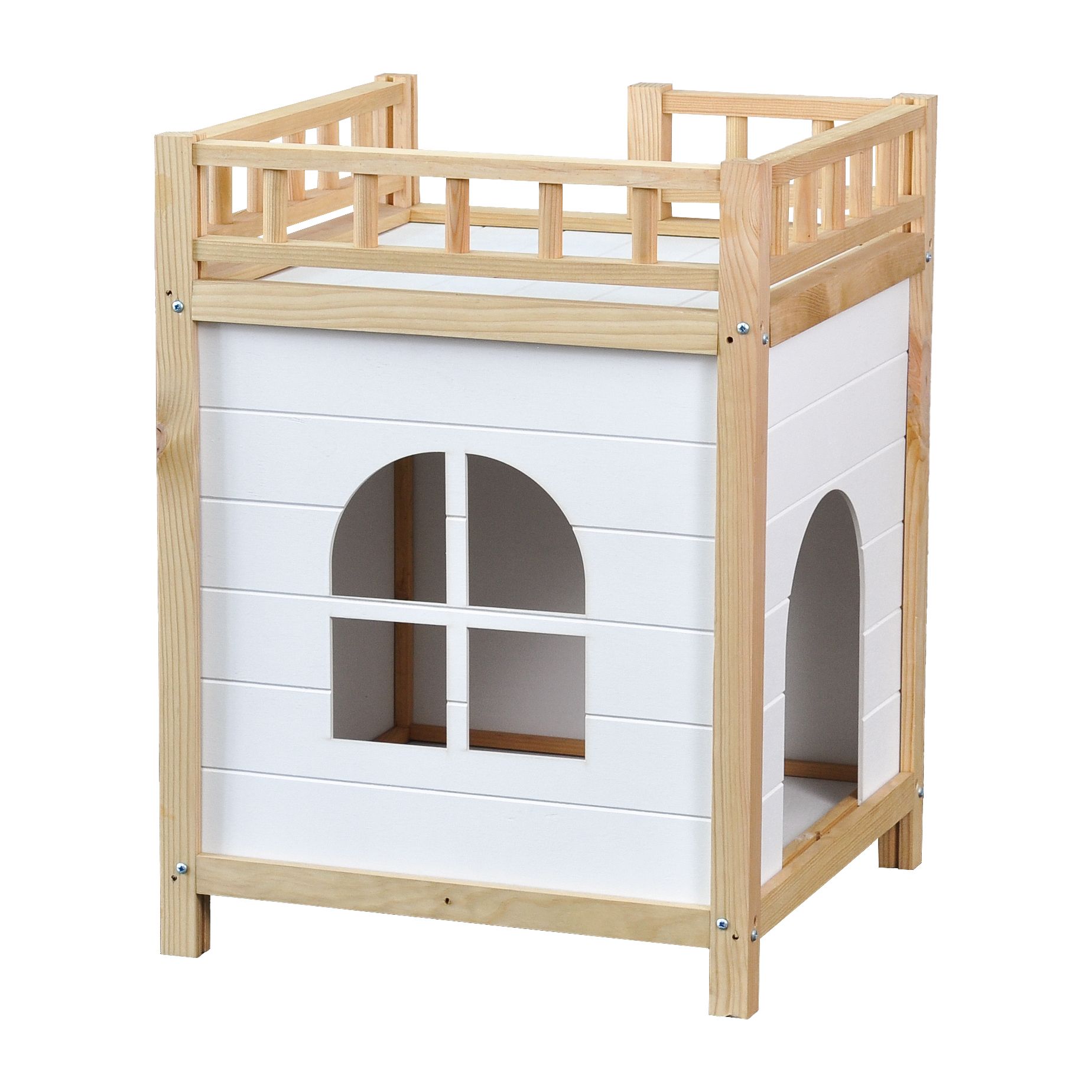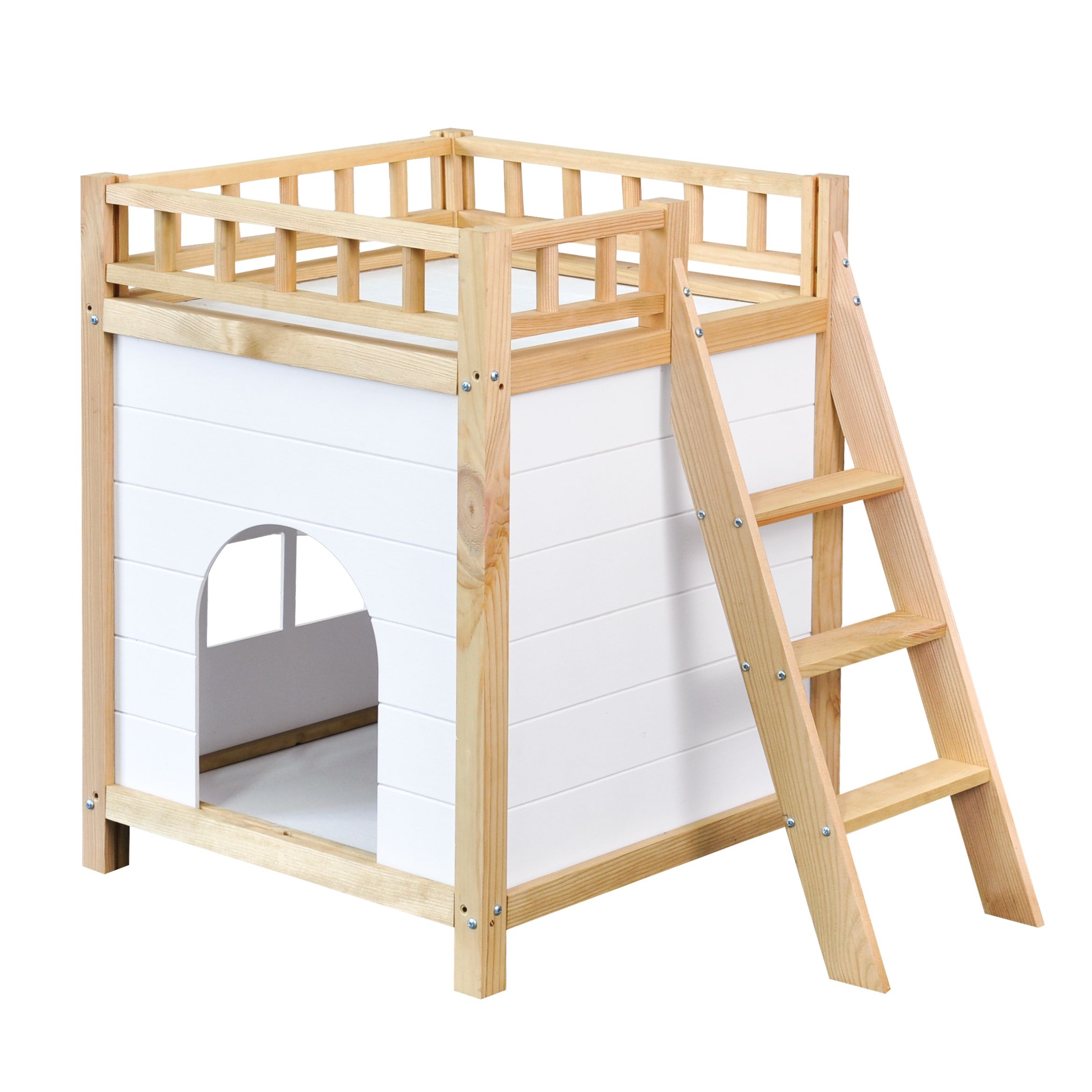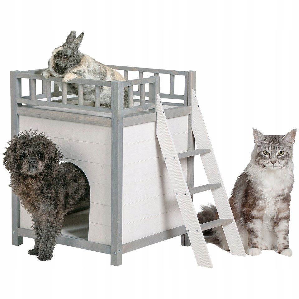 Ищете идеальное место отдыха для вашего питомца? Представляем вам Домик для животных из массива сосны Вальди двухэтажный в стиле рустик из массива сосны! Этот прочный домик с лестницей и ограждением станет уютный убежищем для ваших домашних питомцев. Прочный домик дополнен лестницей для удобного подъема и спуска питомца и балконом с ограждением, которое не даст упасть ему во сне. Его можно использовать как домик для кошки, домик для собак (домик для собак мелких и средних пород), домашнюю будку и лежанку для собак, домик для кролика и домик для морской свинки.