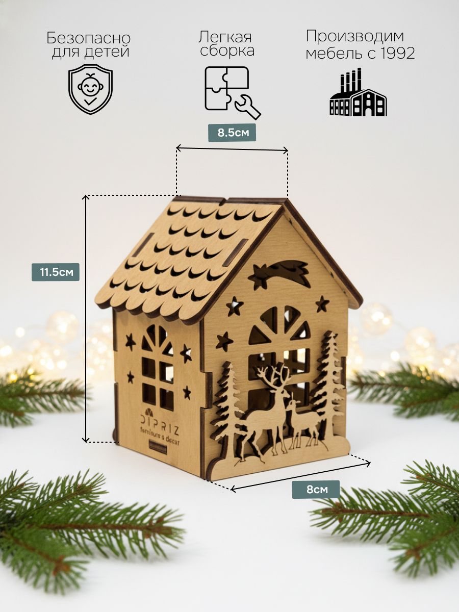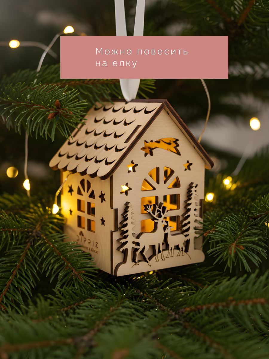 Создайте праздничную атмосферу в своем доме с очаровательным домиком от Dipriz! Эта милая елочная игрушка, выполненная из натуральной фанеры, станет настоящим украшением вашей новогодней елки. Ее уютный бежевый цвет и изящный новогодний рисунок добавят вашему празднику нотки тепла и уюта. Подвесьте этот милый домик на елку и наслаждайтесь волшебной атмосферой Нового года! Он станет прекрасным подарком для любимой, бабушки или мамы, принося радость и праздничное настроение.