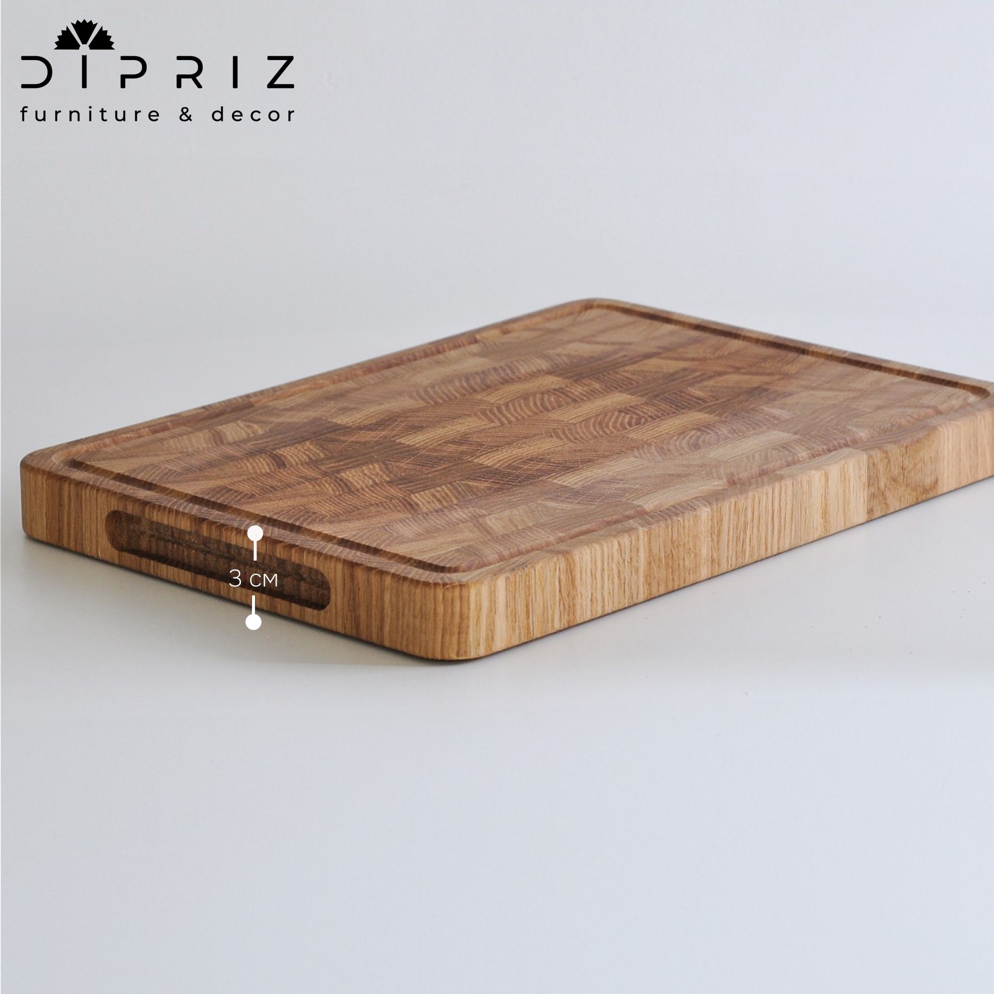 Классический дизайн и благородный оттенок дуба делают эту доску не только функциональным кухонным инструментом, но и стильным элементом сервировки.
