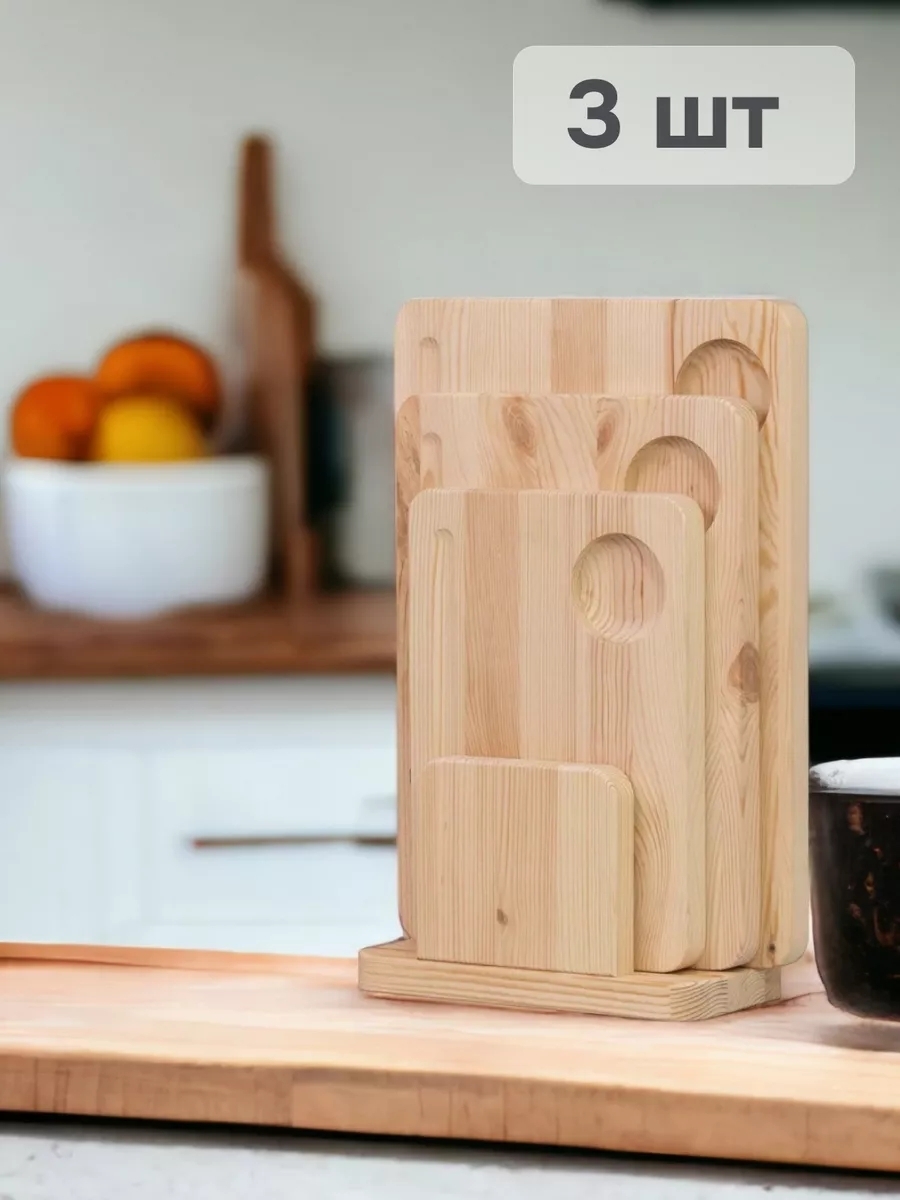Разделочные доски от бренда DIPRIZ - полезные аксессуары в компактном формате хранения. Созданы из материала высокой прочности - массива сосны - дерево с высокими гигиеническими показателями, которое бережно относится к режущей кромке ножа. Модель представлена в комплекте из 3 досок: 21*30см, 26*36см.30*42см. Изделия располагаются в вертикальном положении в большой подставке. Стильные аксессуары прямоугольной формы выполнены в лаконичном дизайне и впишутся в любой интерьер кухни или столовой. Контейнер не задерживает влагу, а между предметами во время хранения есть расстояние. Практичные вещи можно мыть в мойке вручную или вместе с другой посудой в посудомоечной машине. Многоразовый инвентарь - полезный помощник в кулинарии, для работы на кухне и готовки. Удобен для нарезки колбасы или твердого сыра, чистки овощей и фруктов от кожуры, шинковки капусты для салата и разделки готовой птицы, рыболовной добычи или замороженных полуфабрикатов, для приготовления суши из морепродуктов, подачи закусок или сладостей для перекуса во время походного отдыха или завтрака дома. Модная утварь в скандинавском стиле - необычная альтернатива тарелкам и удобна в виде сервировочной для праздничного мероприятия или семейного ужина. Красивый комплект из многофункциональных приспособлений - милый подарочный вариант на свадьбу или новоселье, на 8 Марта или 14 Февраля для любой женщины: мамы и бабушки. Преподнесите их свекрови, тете и лучшей подруге на годовщину. Кухонные принадлежности используют дома и на даче, берут на пикник для удобства во время отдыха на природе. У нас есть разные наборы из досочек в разном формате расположения, в количестве. Сделано в Беларуси. У нас есть акции и распродажи, Вы можете купить наши товары в подарок со скидкой!
