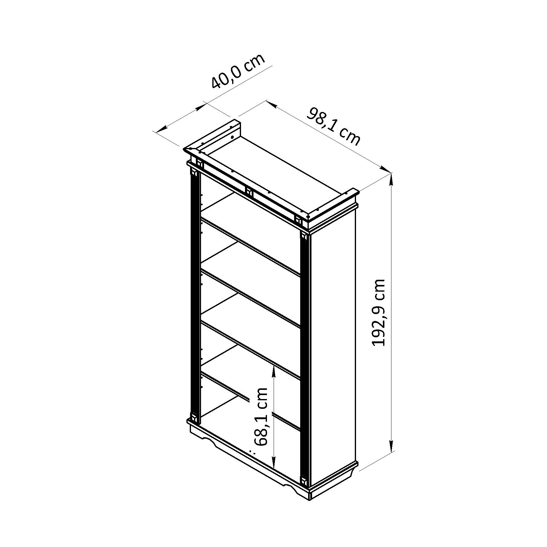 Габариты книжного шкафа составляют 98.1х192.9х40 см.