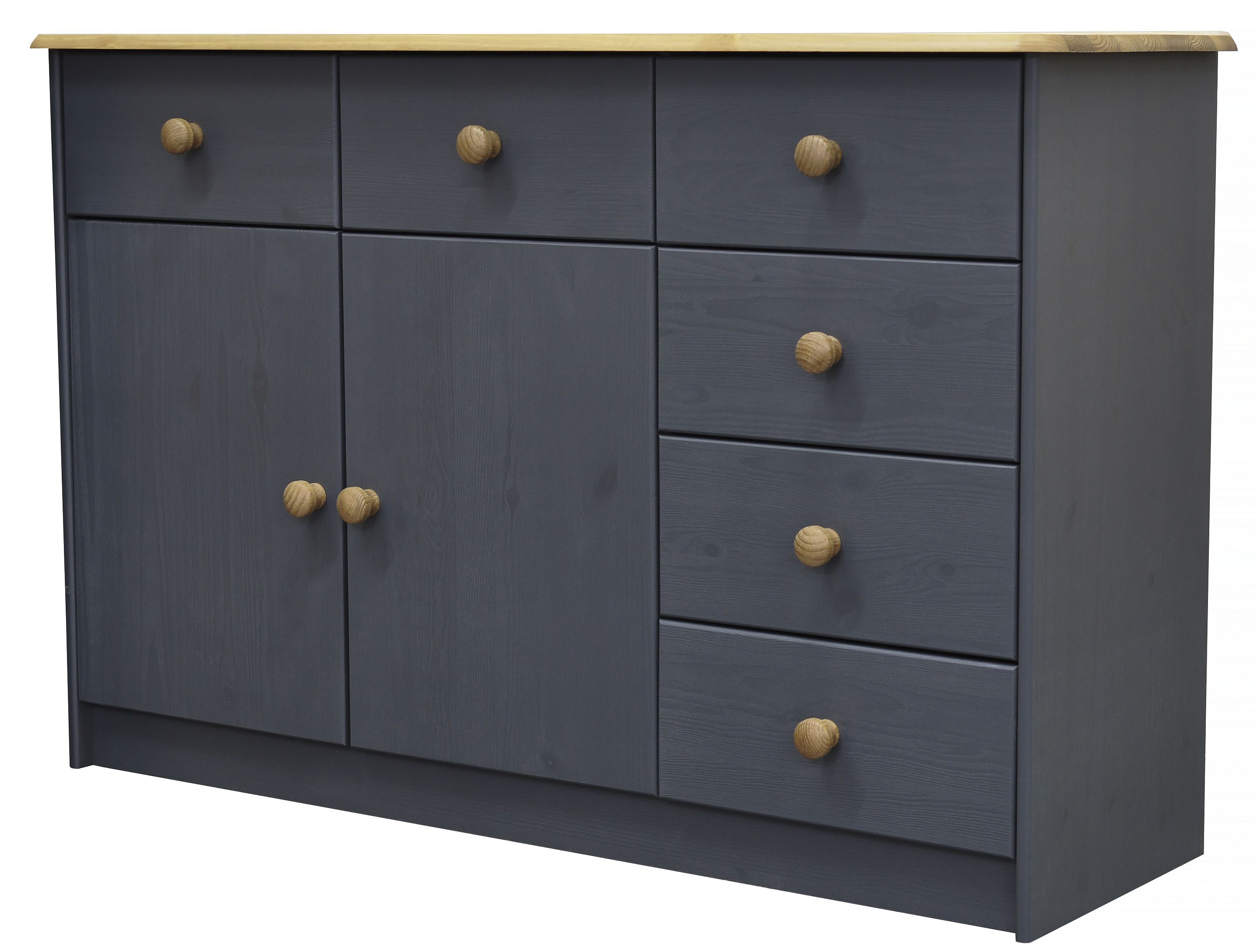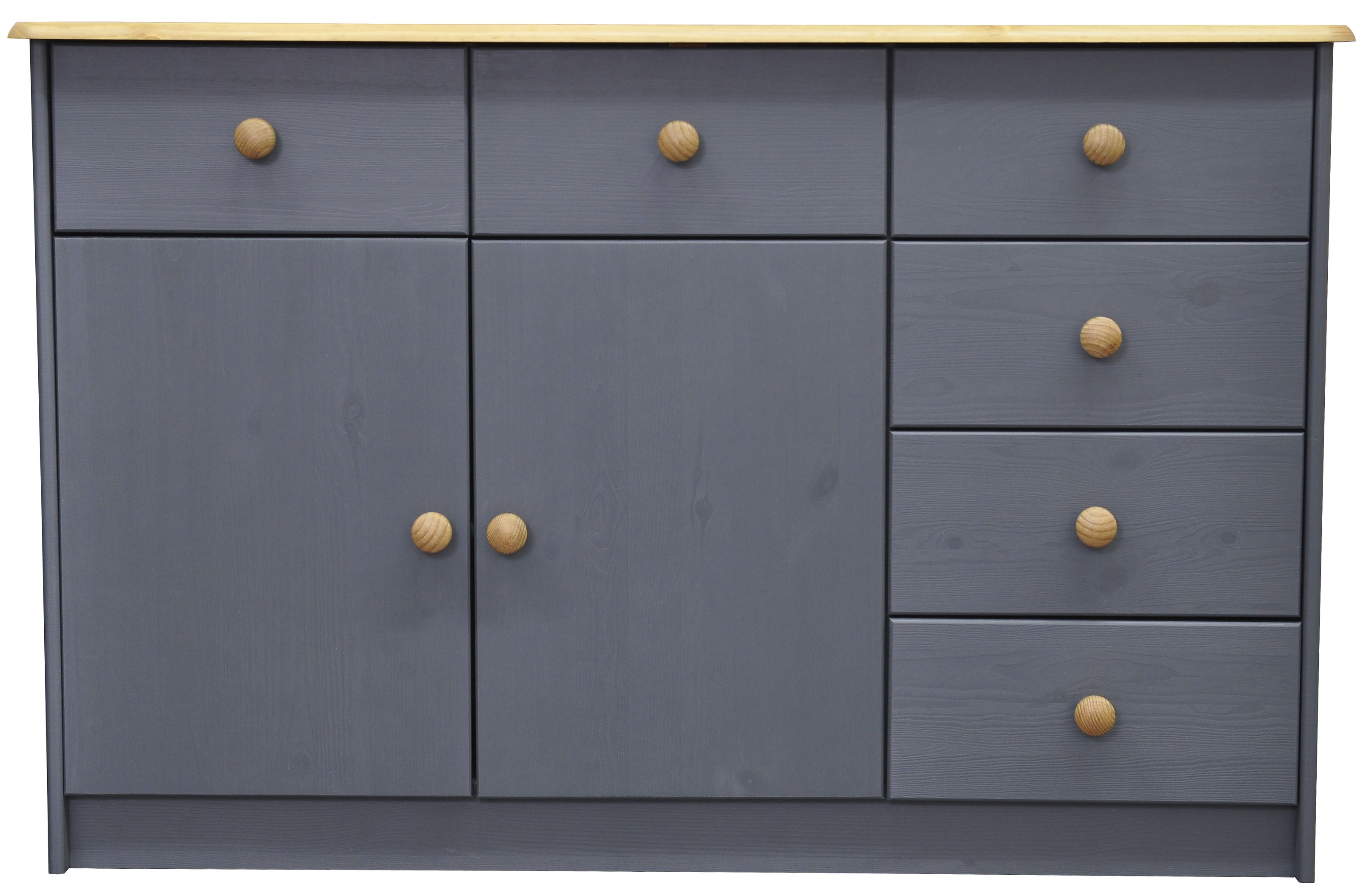 Комод Хаба из красивого цельного дерева привнесет атмосферу домашнего уюта. Изделие привлекает к себе внимание видимой структурой изысканных поверхностей. Дизайн придерживается современного минималистичного вида. Изысканный модуль состоит из двухстворчатого отделения и шести ящиков для удобного хранения мелочей. Вид отделки серый антик.
