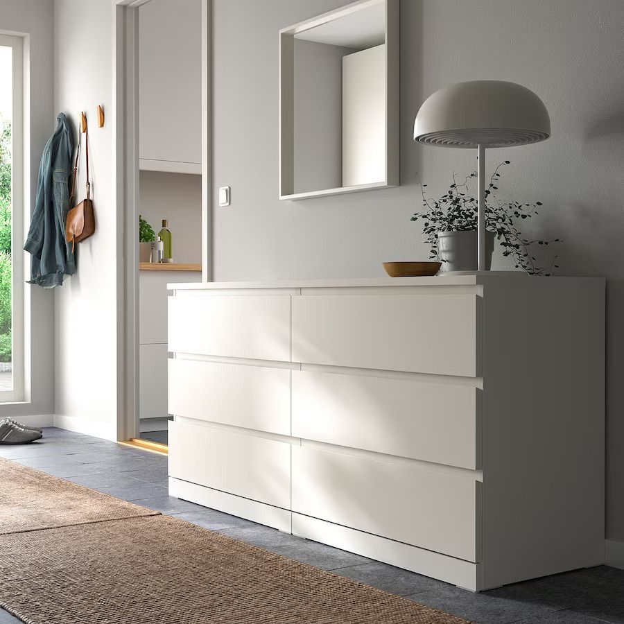 Комод 6 ящиков изготовлен из качественных материалов и имеет прочную конструкцию, что обеспечит долгую и надежную эксплуатацию. В комоде с ящиками используются роликовые направляющие известной фирмы Boyard. Комод из нашей коллекции Икеа - это гарантия высокого качества и стильного дизайна. Также, этот комод икеа можно использовать как комод под телевизор. Не упустите возможность приобрести этот универсальный комод с ящиками для одежды для вашего дома уже сегодня!