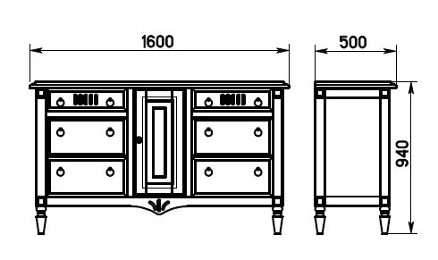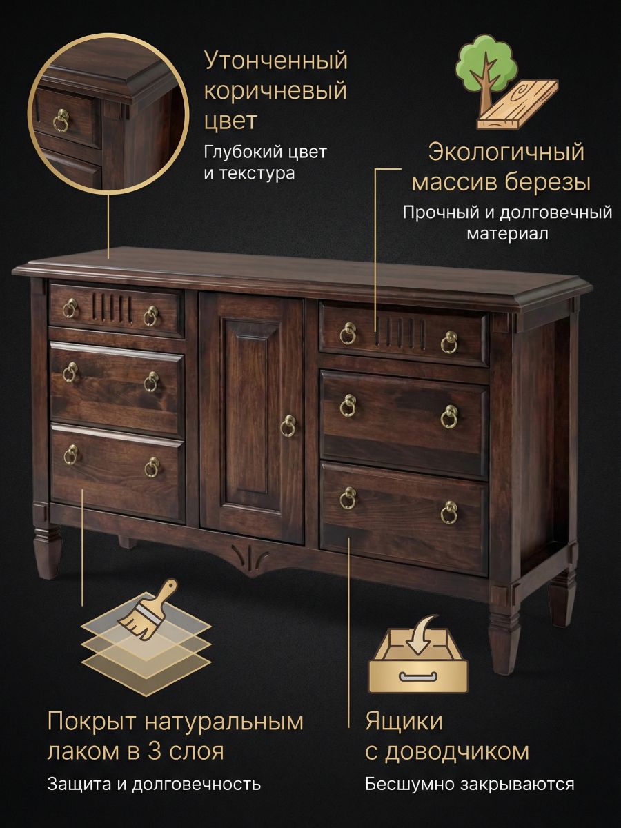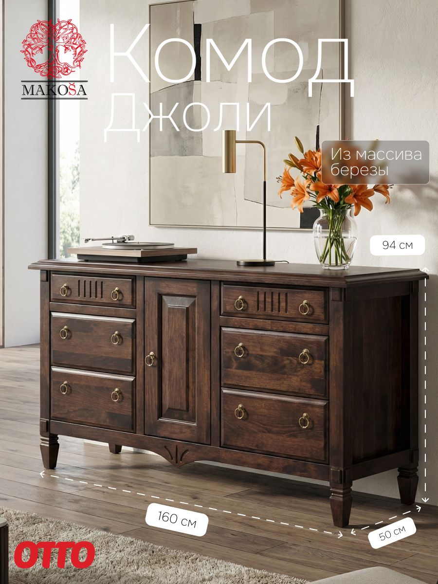 Комод Джоли, 160х50х94, из массива березы, с шестью ящиками, Dipriz