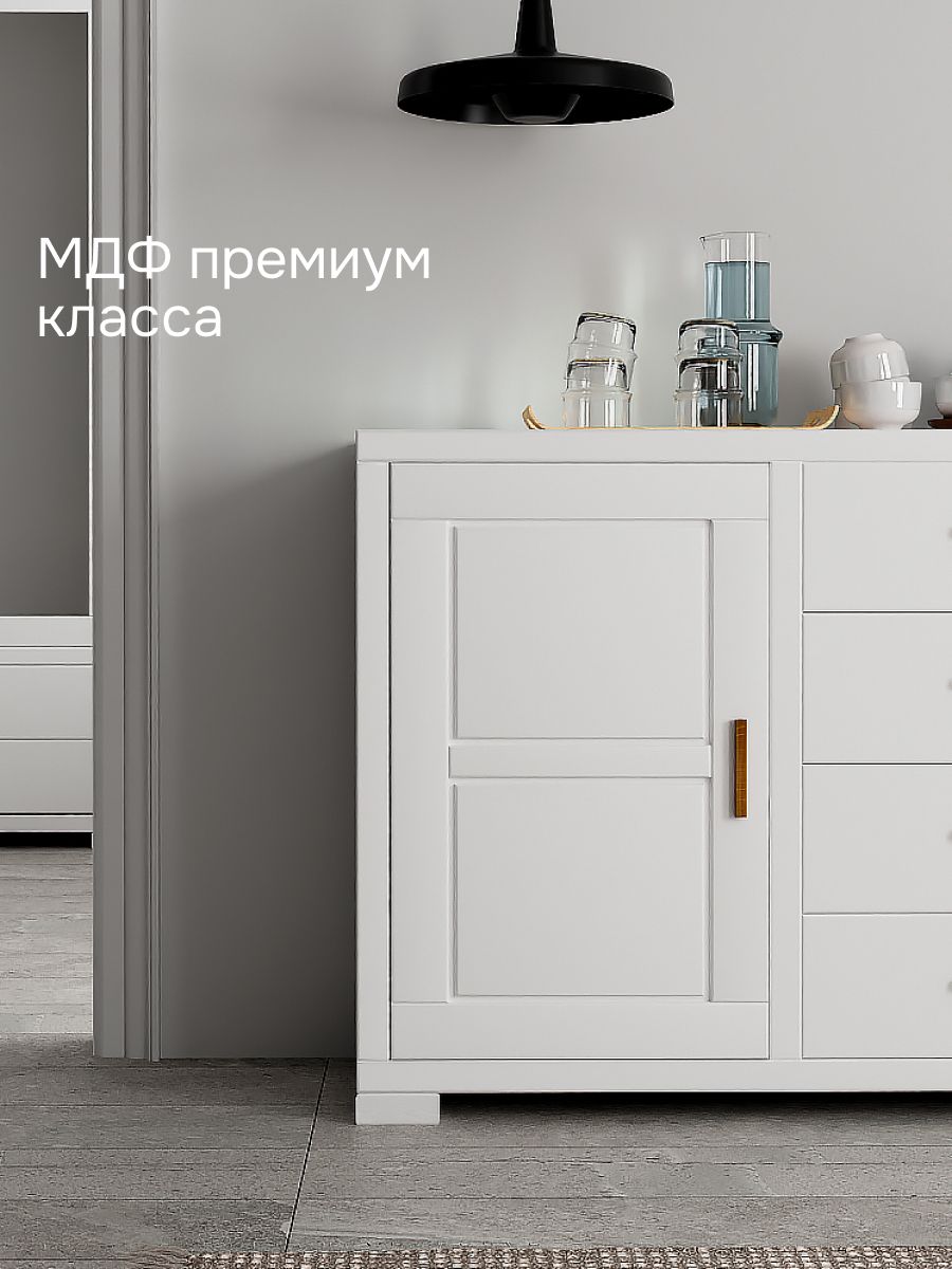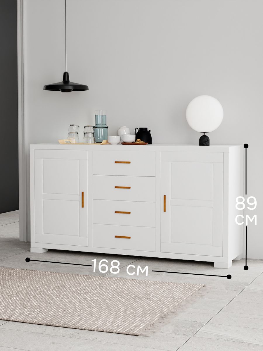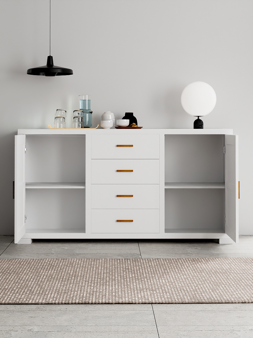Комод "Мэдисон" из натурального дерева гармонично сочетает современный и классический стили. Комод устойчив и прочен, очень прост в уходе. Благодаря наличию большого количества отсеков (два отсека, разделенные полками + 4 ящика) вы сможете организовать хранение различных вещей любым удобным для вас способом. Комод подходит как для хранения как посуды и текстиля, так и для хранения домашней библиотеки вдали от пыли.
