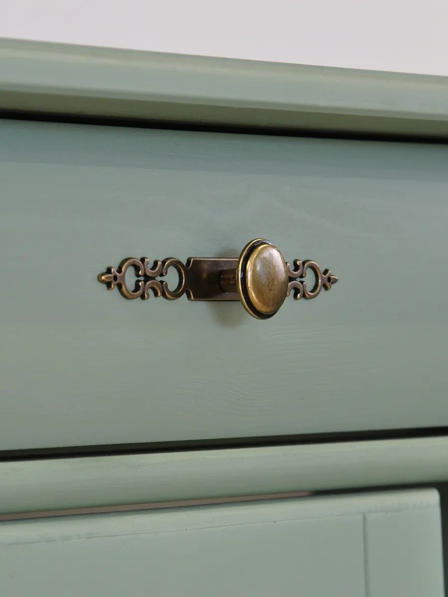 - Фурнитура: Латунные ручки с декоративной резьбой.