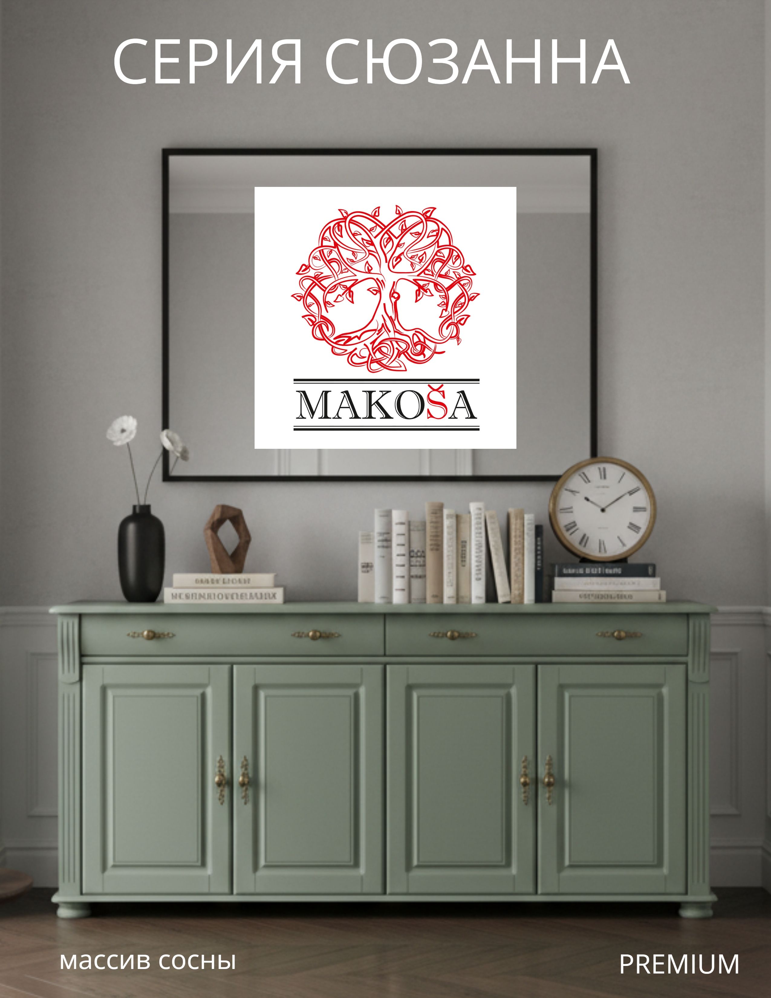 Комод "Сюзанна" из массива сосны – стиль и функциональность для вашего домаДобавьте элегантности и уюта в ваш интерьер с комодом "Сюзанна"! Изготовленный из натурального массива сосны, этот комод сочетает в себе классический дизайн и практичность. Скандинавский эвкалиптовый цвет и изящные латунные ручки с декоративными элементами придают ему утонченный винтажный шарм, который идеально впишется в спальню, гостиную или прихожую.Характеристики: