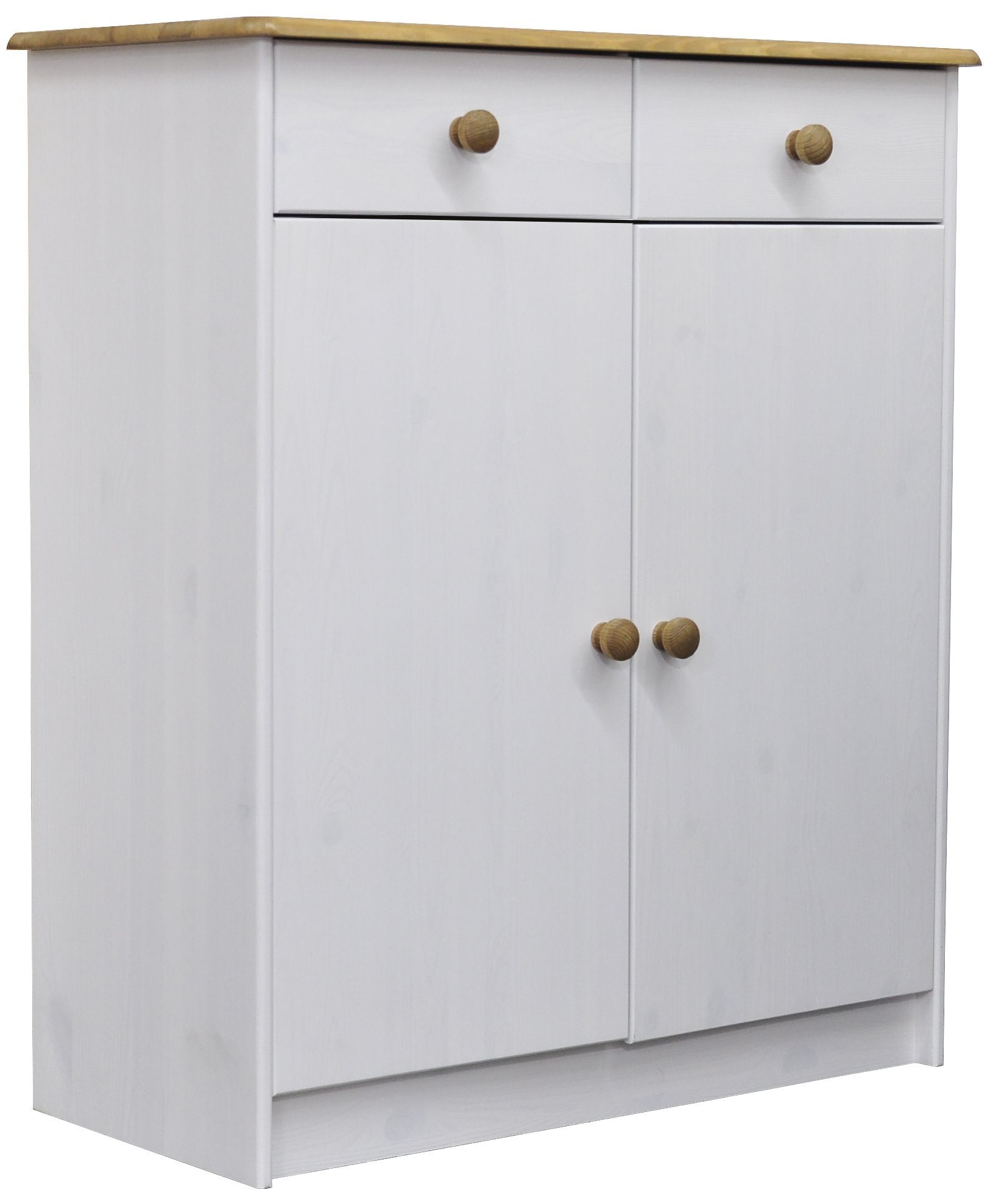 Комод Хаба из красивого цельного дерева привнесет атмосферу домашнего уюта. Изделие привлекает к себе внимание видимой структурой изысканных поверхностей. Дизайн придерживается современного минималистичного вида. Изысканный модуль состоит из двухстворчатого отделения и двух ящиков для удобного хранения мелочей. Вид отделки белый/антик.