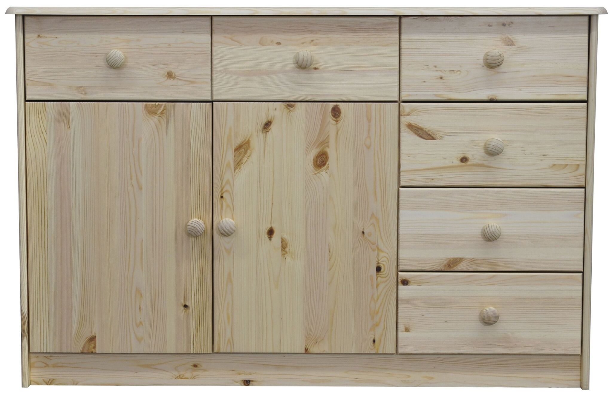 Комод Хаба из красивого цельного дерева привнесет атмосферу домашнего уюта. Изделие привлекает к себе внимание видимой структурой изысканных поверхностей. Дизайн придерживается современного минималистичного вида. Изысканный модуль состоит из двухстворчатого отделения и шести ящиков для удобного хранения мелочей. Вид отделки лак. Цветовое исполнение придется по вкусу ценителями естественной красоты древесины.