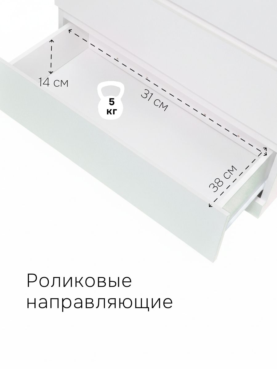 Одним из главных преимуществ нашего белого комода из ЛДСП являются глубокие ящики. Благодаря этому, вы сможете хранить даже крупные предметы, такие как подушки, игрушки и т.д. Кроме того, глубокие ящики обеспечивают удобную и эргономичную организацию пространства, что позволяет легко находить нужные вещи и быстро убирать их на свои места.