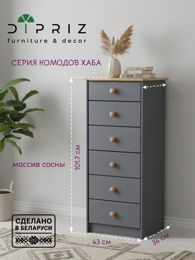 Серый комод с 6 ящиками Хаба — это идеальное сочетание стиля, функциональности и долговечности.