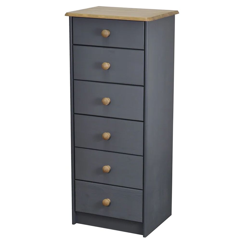 Этот многофункциональный комод включает 6 ящиков, которые идеально подходят для хранения одежды, аксессуаров и других предметов. Благодаря своим размерам (ширина х глубина х высота, см) - 43х34х101.7 см - мебель можно использовать в качестве узкого комода в спальню, высокого комода для прихожей, а также детского комода с выдвижными ящиками. Прочные стенки, крышка и полик добавляют надежности использования мебели и её долговечность.