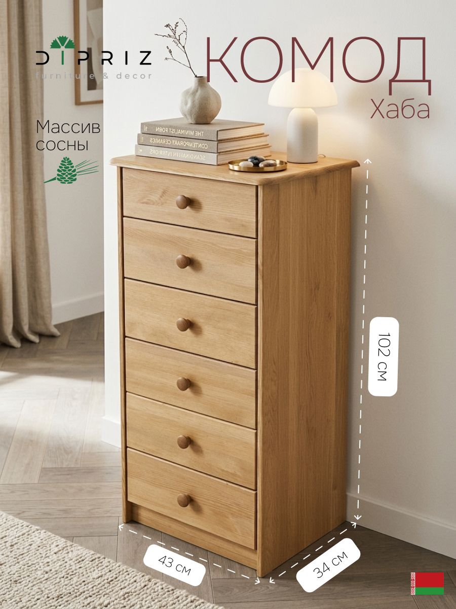 Комод деревянный 6 ящиков Хаба - 1 шт