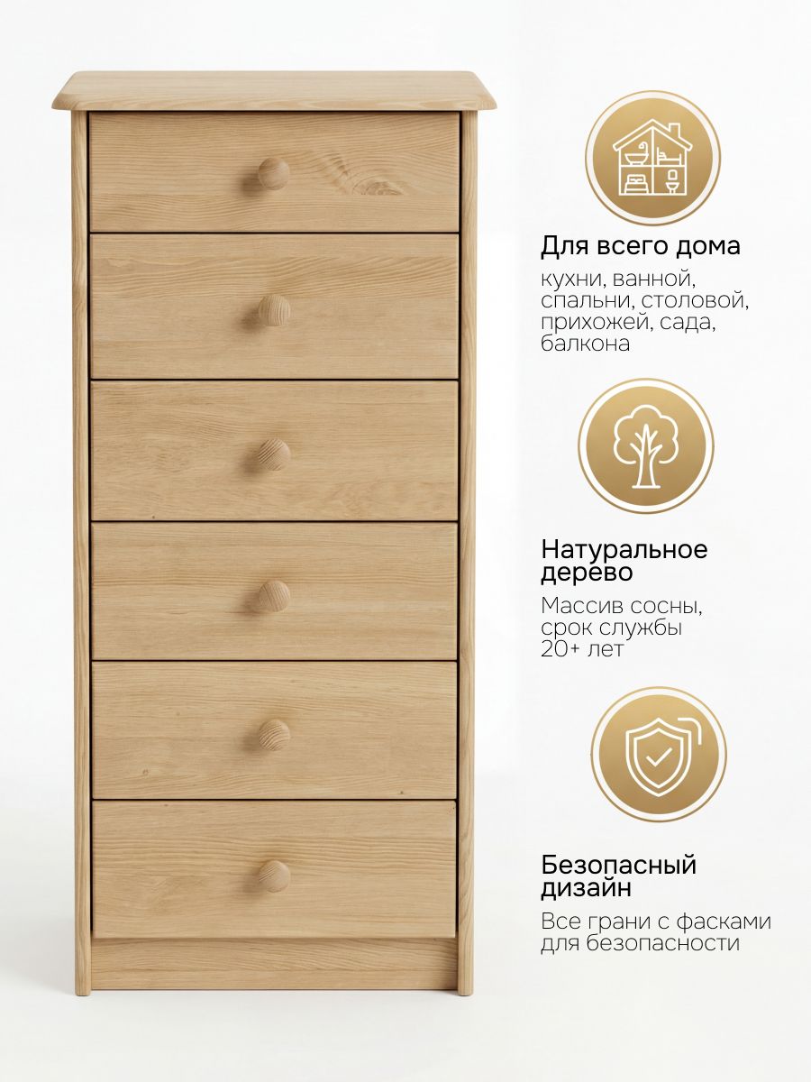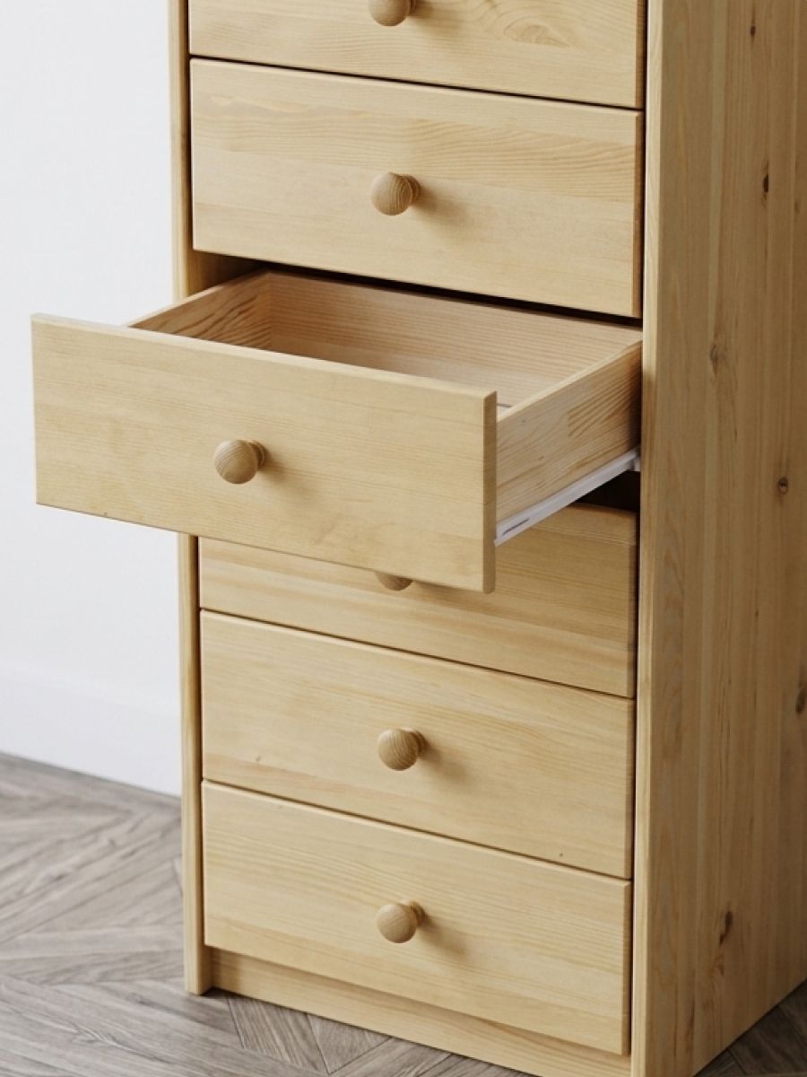 Комод из массива сосны с шестью ящиками — узкий, высокий, для спальни, прихожей или детской