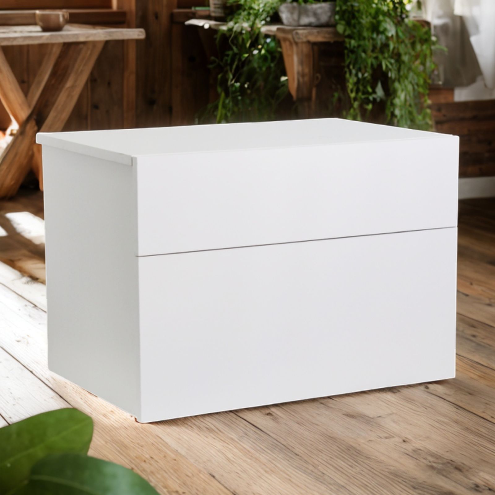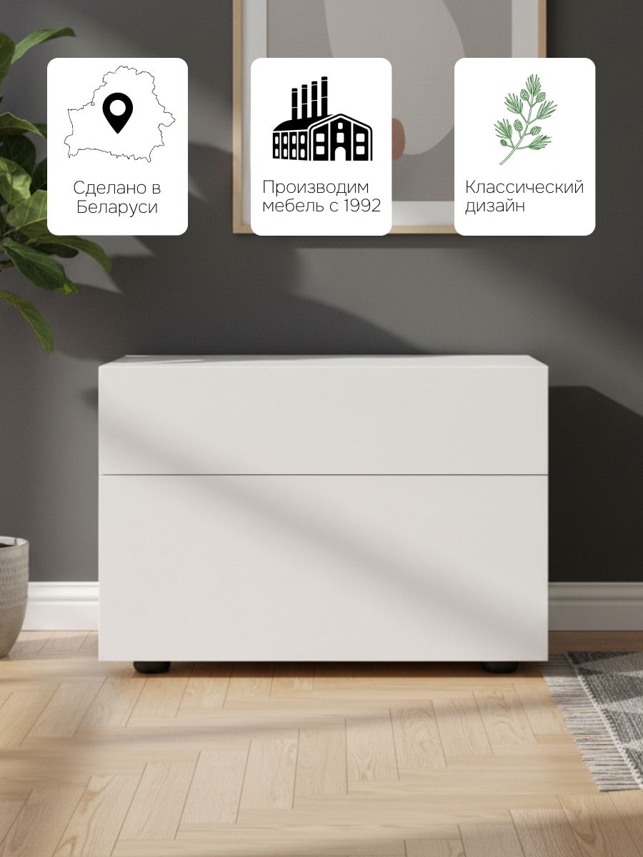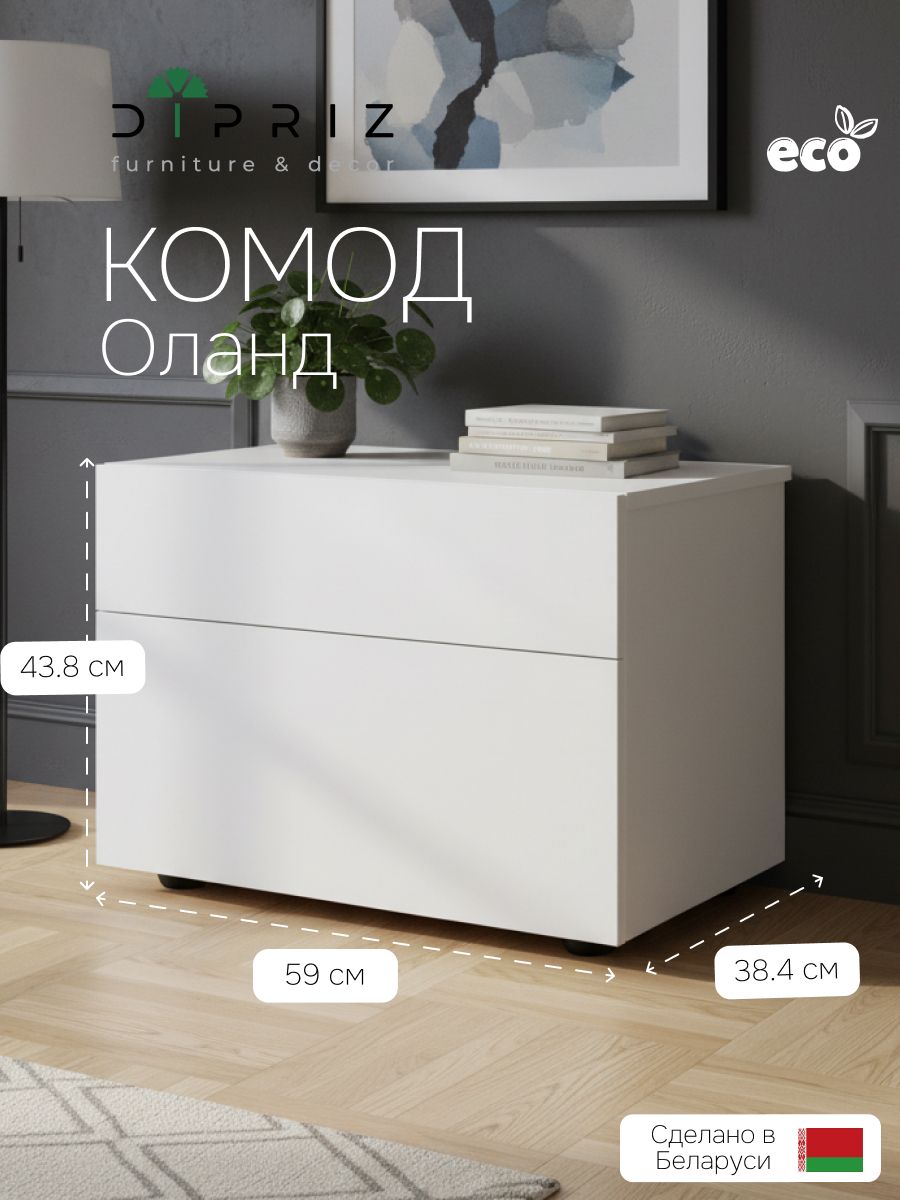 Комод Оланд белый отлично подойдет для игрушек и детских вещей, для белья и одежды, для косметики, для книг и инструментов. Комод деревянный с 2 вместительными ящиками позволит поддерживать порядок в любой комнате, будь то прихожая, спальня, гостиная, ванная или детская комната. Данная модель комода может быть использована как тумба под телевизор, особенно если совместить два комода вместе.