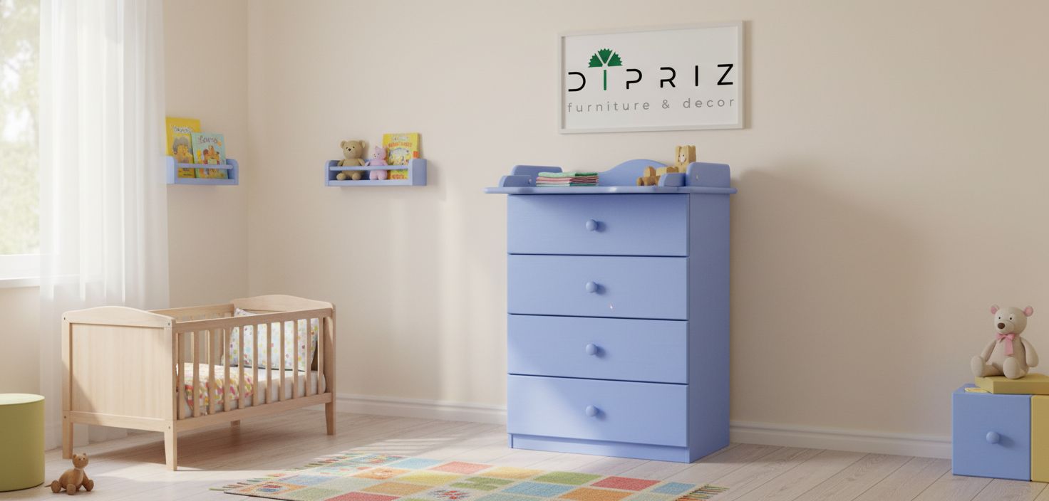 Пеленальный комод «Алиса» в нежно-синем цвете от белорусского производителя Диприз — это идеальное сочетание экологичности, функциональности и современного дизайна для детской комнаты.