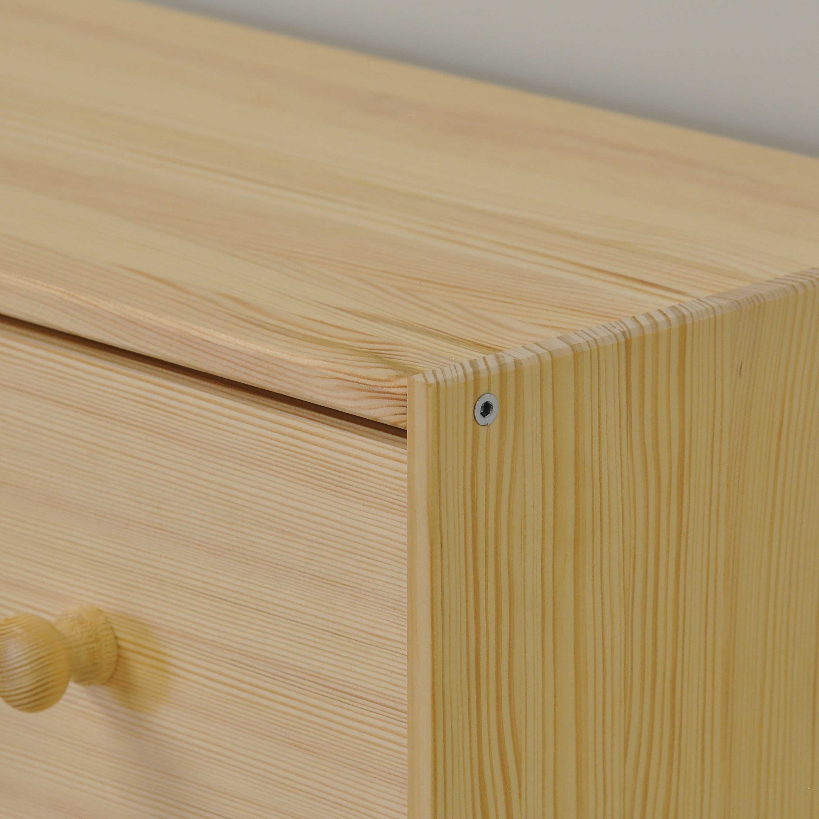 Комод деревянный с ящиками Раст от белорусского производителя мебели изготовлен из экологически чистого материала - натурального дерева массива сосны, которое отличается высокой прочностью и долговечностью.