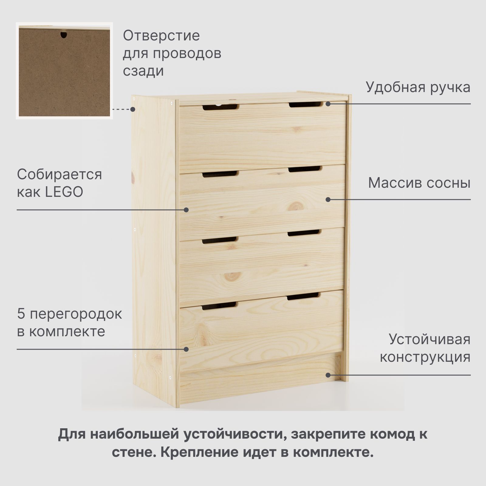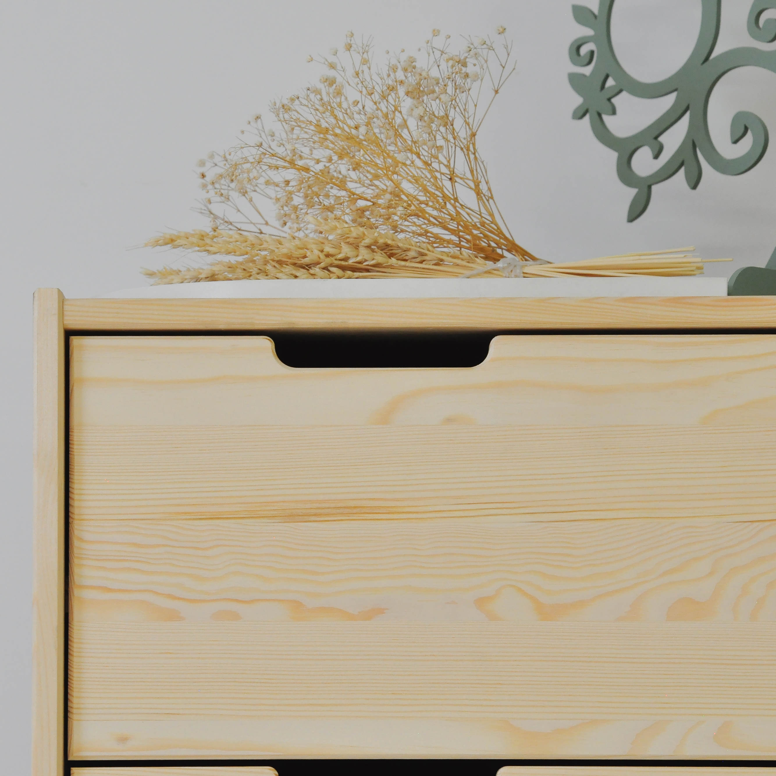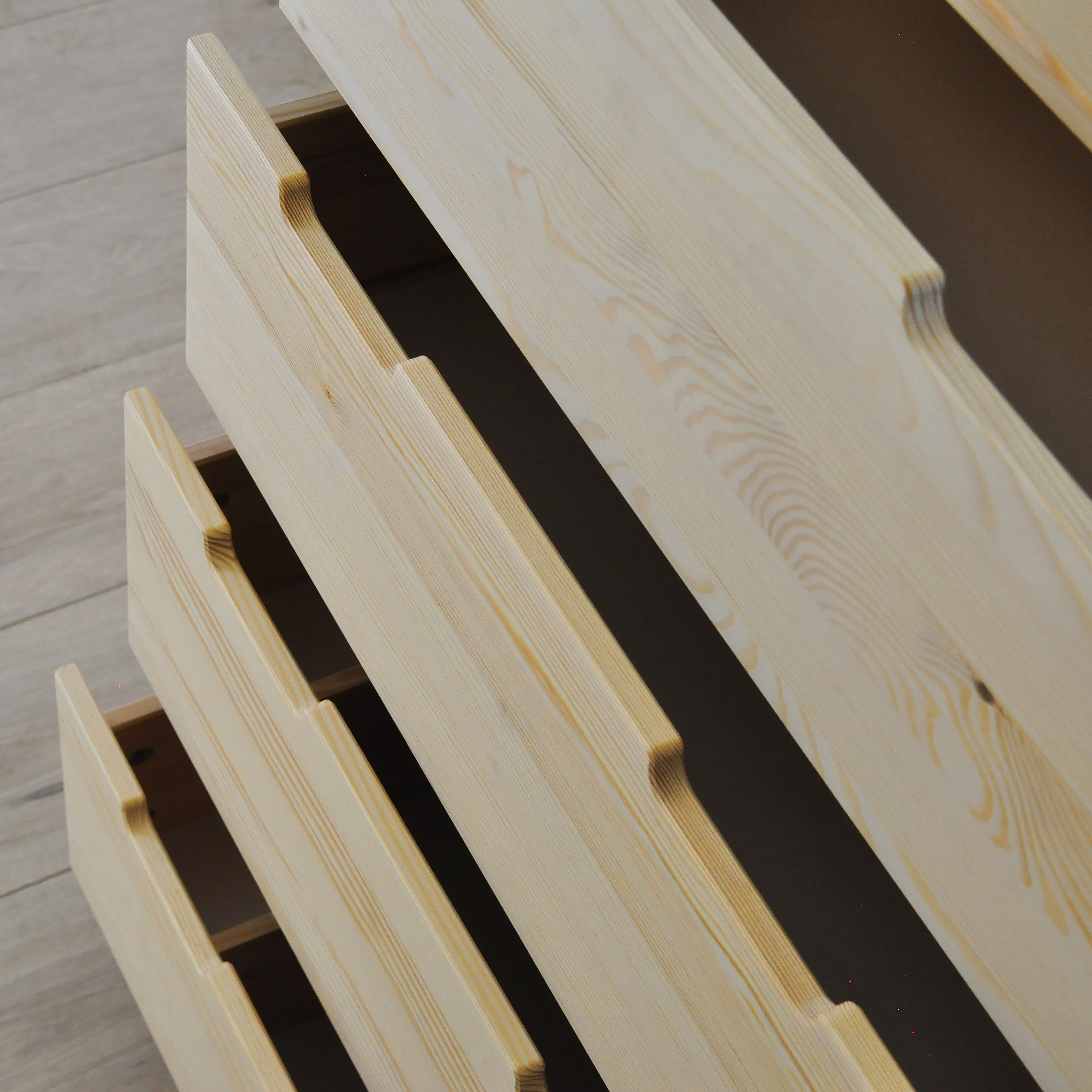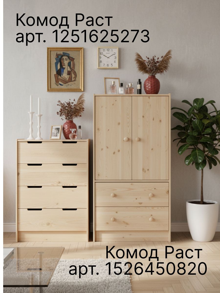 Комод для одежды с ящиками Раст – это современное сочетание стиля и функциональности. Минималистичный дизайн и просторные ящики делают его идеальным выбором для хранения вещей и создания стильного интерьера. Стильный комод из массива сосны отлично впишется в комнаты современного и скандинавского стиля, бохо, лофт, минимализм. Подчеркните уникальность и создайте свое уютное домашнее пространство с нашей мебелью. Мы заботимся о Вашем удобстве!