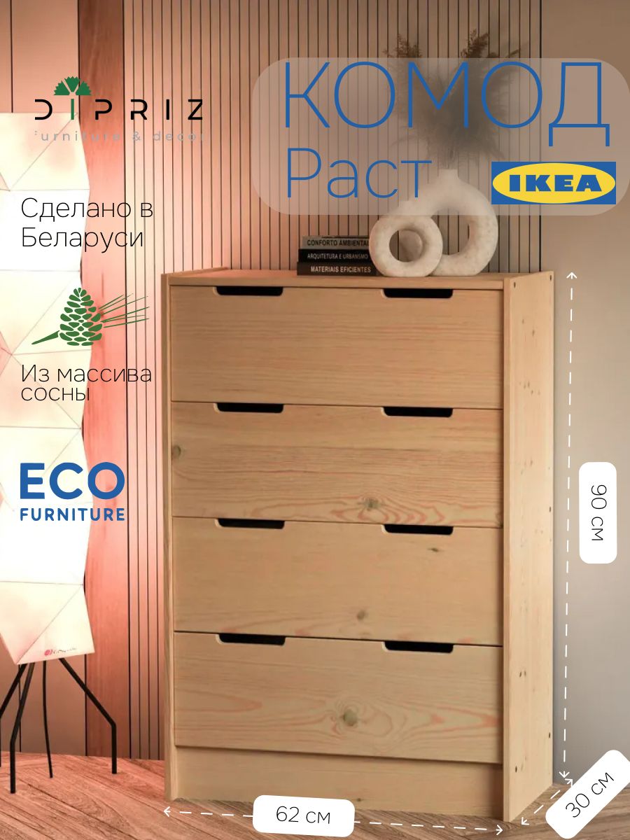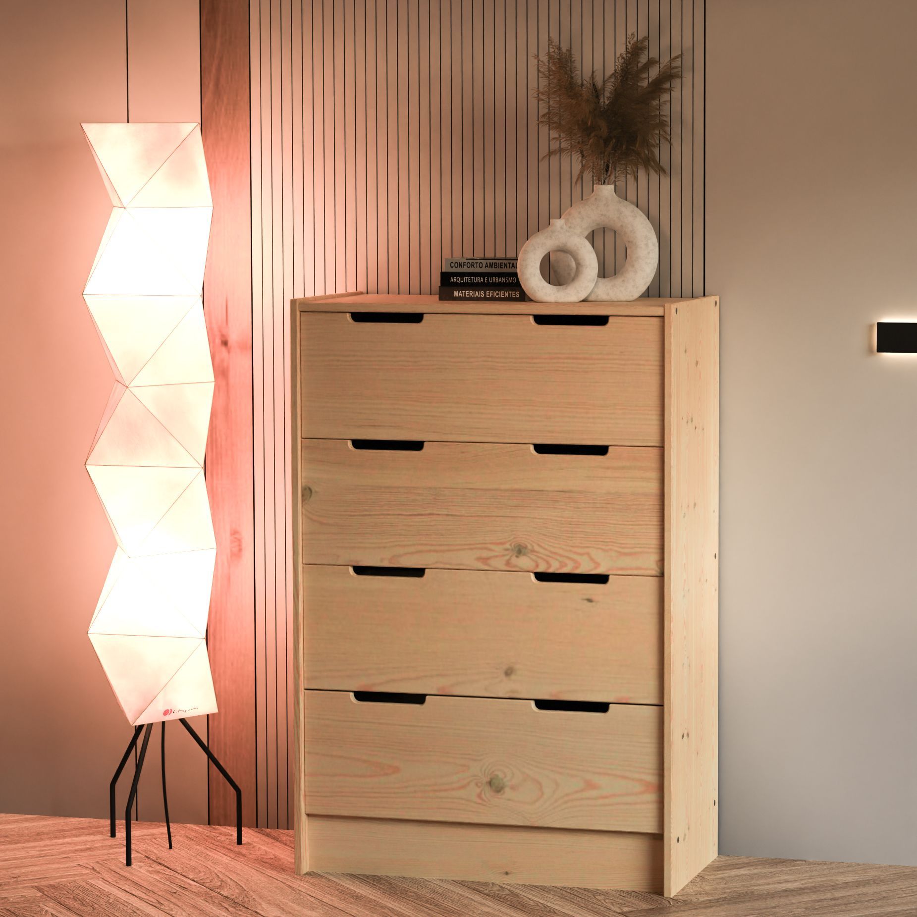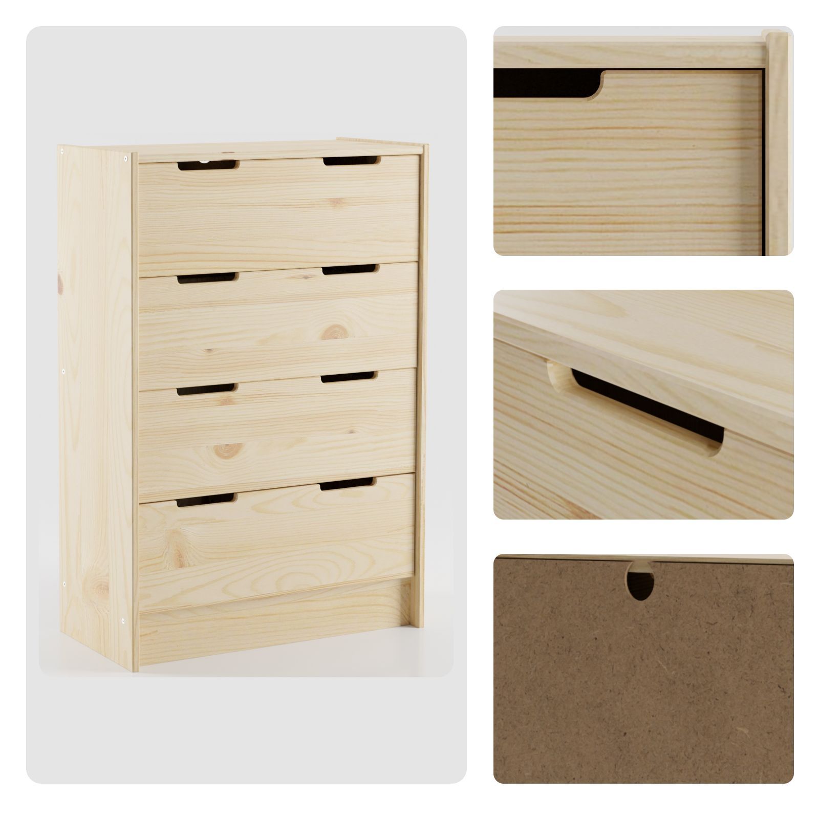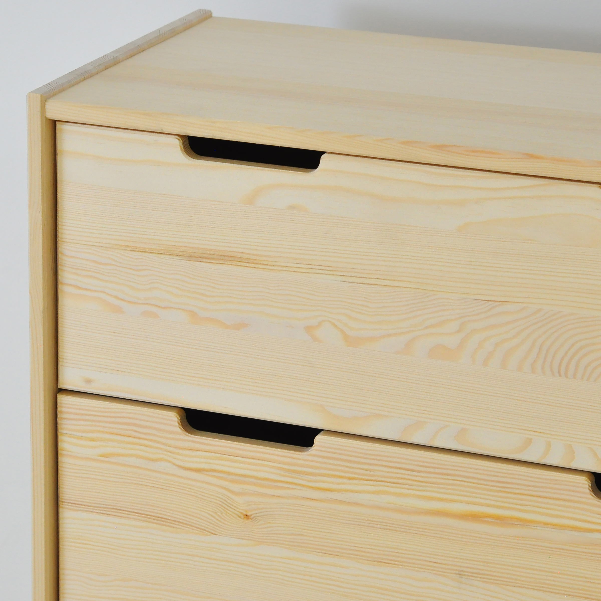 Комод для одежды с ящиками Раст – это современное сочетание стиля и функциональности. Минималистичный дизайн и просторные ящики делают его идеальным выбором для хранения вещей и создания стильного интерьера. Стильный комод из массива сосны отлично впишется в комнаты современного и скандинавского стиля, бохо, лофт, минимализм. Подчеркните уникальность и создайте свое уютное домашнее пространство с нашей мебелью. Мы заботимся о Вашем удобстве!