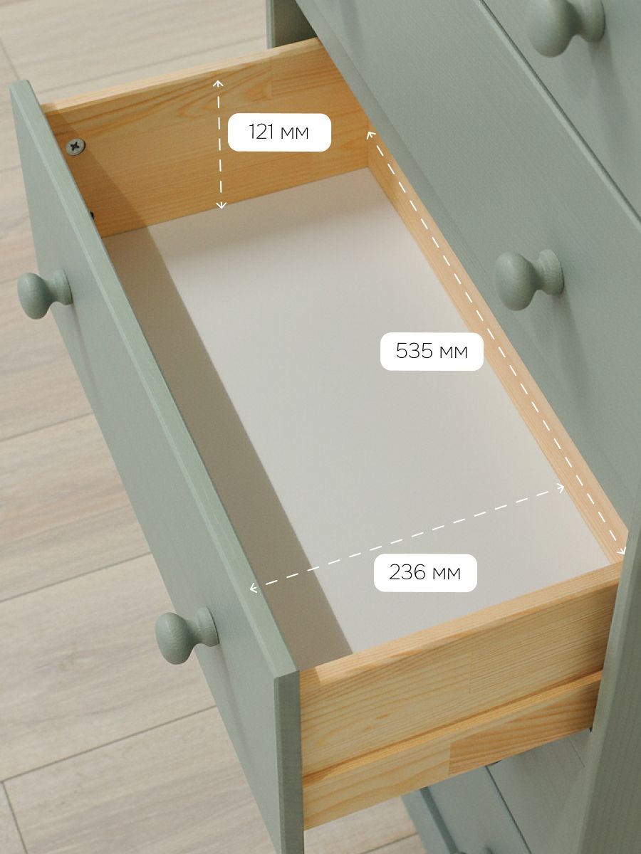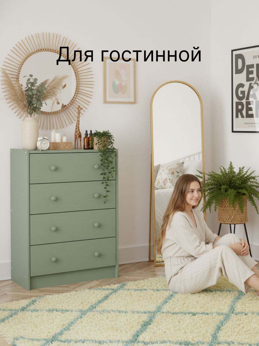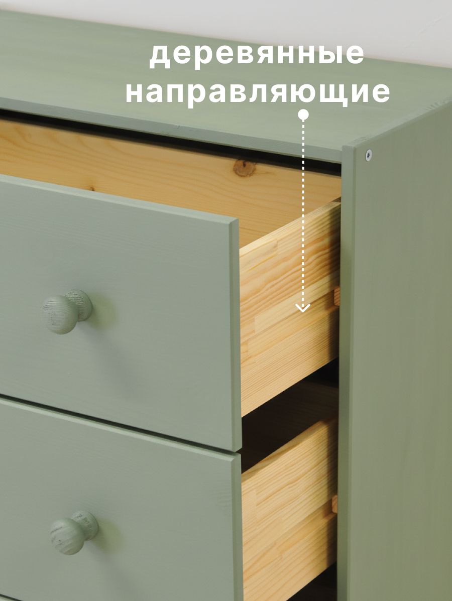 Комод для хранения Раст от белорусского производителя мебели изготовлен из экологически чистого материала - натурального дерева массива сосны, которое отличается высокой прочностью и долговечностью. Комод включает 4 выдвижных ящика с деревянными направляющими.Ящики деревянного комода можно использовать для хранения вещей одного типа или тематически разделить их по назначению. Например, верхние ящики использовать под носки, перчатки и шарфы, средние - под футболки и майки, нижние - под пижамы и домашнюю одежду. В качестве бонуса дополнили комод органайзерами для белья, которые Вы сами сможете настроить под свои нужды. В качестве отделки комода для вещей используется бейц эвкалиптового цвета. Покрытие - экологичное и стильное, подойдет для современных интерьеров. Большой комод легко собирается. Дополнительно можно заменить ручки, чтобы еще больше преобразовать внешний вид изделия. Благодаря своему компактному дизайну его легко превратить в широкий комод, поставив несколько комодов вместе. Из нескольких комодов можно получить вместительный комод для вещей под телевизор. Зеленый комод для одежды Раст идеально подойдет для творческих людей, которые желают создать уникальный дизайн своего дома.Ищете стильный и функциональный комод? Комод с ящиками идеально подойдет для хранения и организации вещей в прихожей и гостиной, спальне, детской и ванной комнате. Деревянный комод для вещей позволяет удобно и компактно разместить в одном месте белье, одежду, обувь, аксессуары. Поэтому он может использоваться как комод для обуви или как комод для игрушек.Расположив мебель в прихожей, вы сможете организовать хранение обуви, аксессуаров и других необходимых предметов, сохраняя порядок и чистоту в вашем входном пространстве. Если вы обустраиваете детскую комнату, наш детский комод станет прекрасным дополнением к интерьеру, чтобы получился замечательный комод для игрушек. Поставьте его в спальню, и получится хороший комод для вещей с ящиками или прикроватная тумба.Комод деревянный Раст – это современное сочетание стиля и функциональности. Минималистичный дизайн и просторные ящики делают его идеальным выбором для хранения вещей и создания стильного интерьера. Стильный комод из массива сосны отлично впишется в комнаты современного и скандинавского стиля, бохо, лофт, минимализм. Подчеркните уникальность и создайте свое уютное домашнее пространство с нашей мебелью. Мы заботимся о Вашем удобстве!