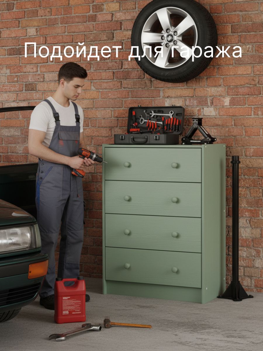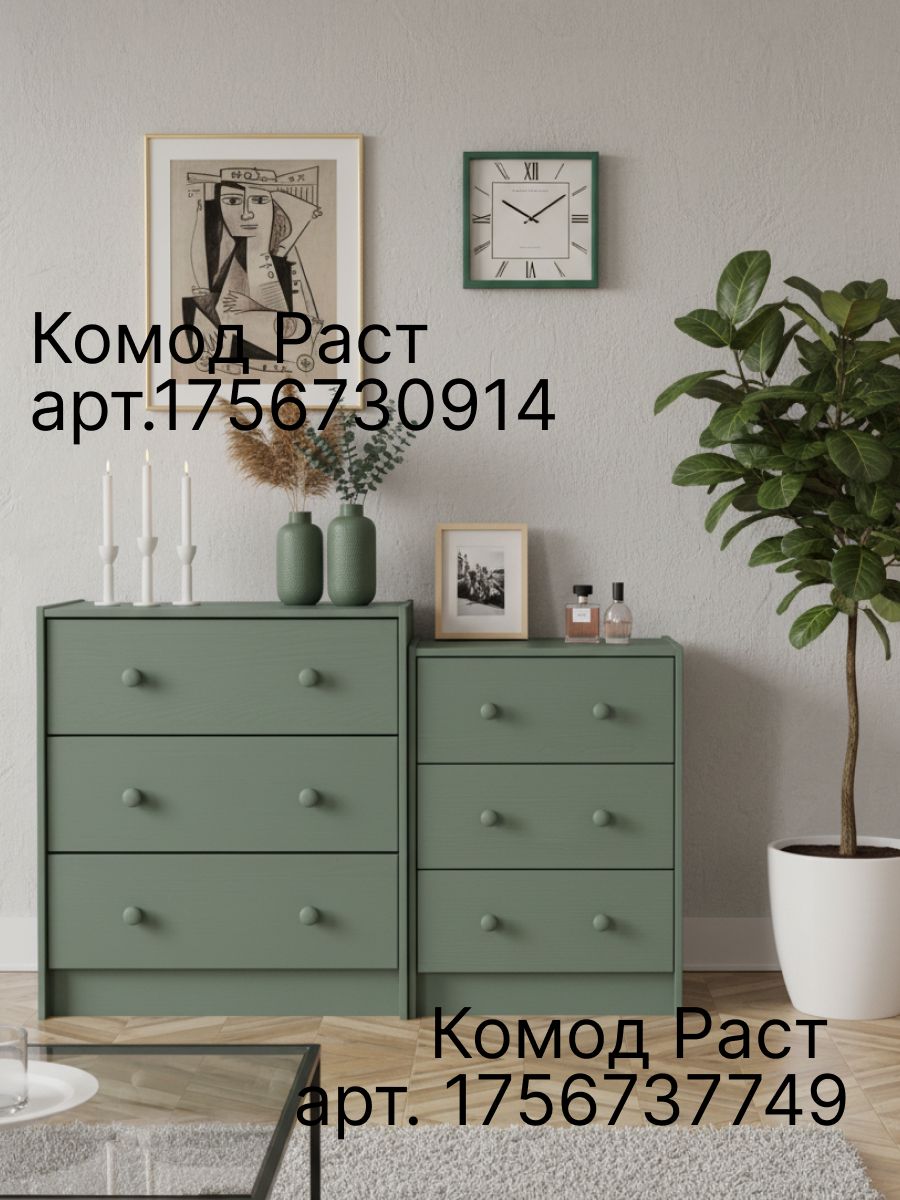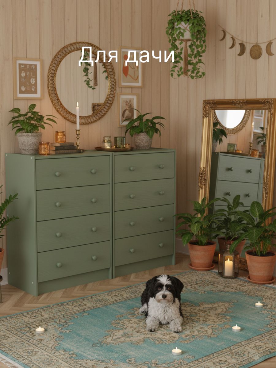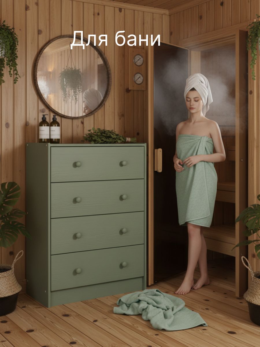 Комод для хранения Раст от белорусского производителя мебели изготовлен из экологически чистого материала - натурального дерева массива сосны, которое отличается высокой прочностью и долговечностью. Комод включает 4 выдвижных ящика с деревянными направляющими.Ящики деревянного комода можно использовать для хранения вещей одного типа или тематически разделить их по назначению. Например, верхние ящики использовать под носки, перчатки и шарфы, средние - под футболки и майки, нижние - под пижамы и домашнюю одежду. В качестве бонуса дополнили комод органайзерами для белья, которые Вы сами сможете настроить под свои нужды. В качестве отделки комода для вещей используется бейц эвкалиптового цвета. Покрытие - экологичное и стильное, подойдет для современных интерьеров. Большой комод легко собирается. Дополнительно можно заменить ручки, чтобы еще больше преобразовать внешний вид изделия. Благодаря своему компактному дизайну его легко превратить в широкий комод, поставив несколько комодов вместе. Из нескольких комодов можно получить вместительный комод для вещей под телевизор. Зеленый комод для одежды Раст идеально подойдет для творческих людей, которые желают создать уникальный дизайн своего дома.Ищете стильный и функциональный комод? Комод с ящиками идеально подойдет для хранения и организации вещей в прихожей и гостиной, спальне, детской и ванной комнате. Деревянный комод для вещей позволяет удобно и компактно разместить в одном месте белье, одежду, обувь, аксессуары. Поэтому он может использоваться как комод для обуви или как комод для игрушек.Расположив мебель в прихожей, вы сможете организовать хранение обуви, аксессуаров и других необходимых предметов, сохраняя порядок и чистоту в вашем входном пространстве. Если вы обустраиваете детскую комнату, наш детский комод станет прекрасным дополнением к интерьеру, чтобы получился замечательный комод для игрушек. Поставьте его в спальню, и получится хороший комод для вещей с ящиками или прикроватная тумба.Комод деревянный Раст – это современное сочетание стиля и функциональности. Минималистичный дизайн и просторные ящики делают его идеальным выбором для хранения вещей и создания стильного интерьера. Стильный комод из массива сосны отлично впишется в комнаты современного и скандинавского стиля, бохо, лофт, минимализм. Подчеркните уникальность и создайте свое уютное домашнее пространство с нашей мебелью. Мы заботимся о Вашем удобстве!