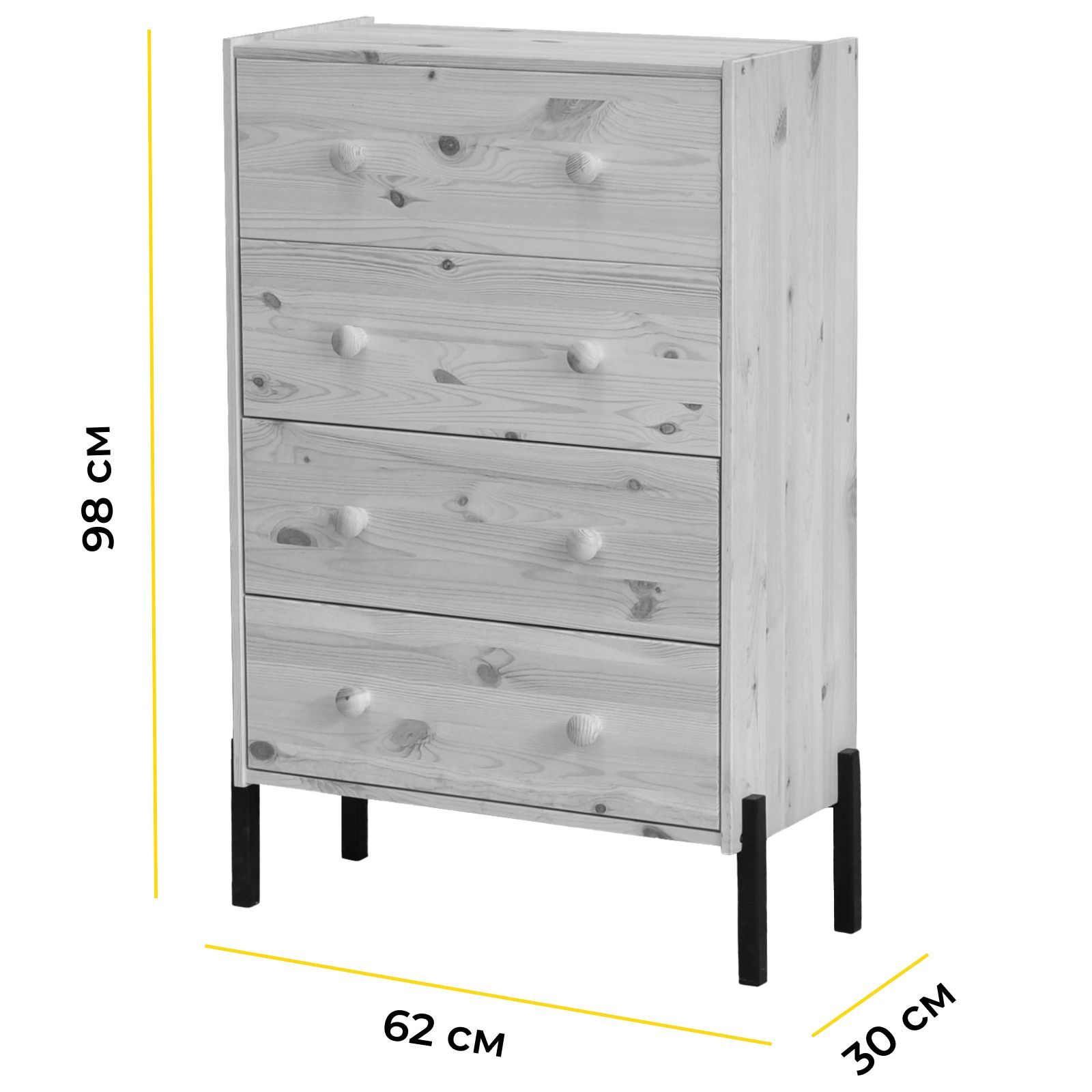 Современная дизайнерская версия комода Раст в скандинавском стиле изготовлена из экологически чистого натурального дерева сосны, что гарантирует высокую прочность и долговечность. Этот многофункциональный комод с 4 ящиками идеально подходит для хранения одежды, аксессуаров и других предметов. Его компактный дизайн и надежная конструкция делают его прекрасным выбором как для прихожей, так и для детской комнаты.