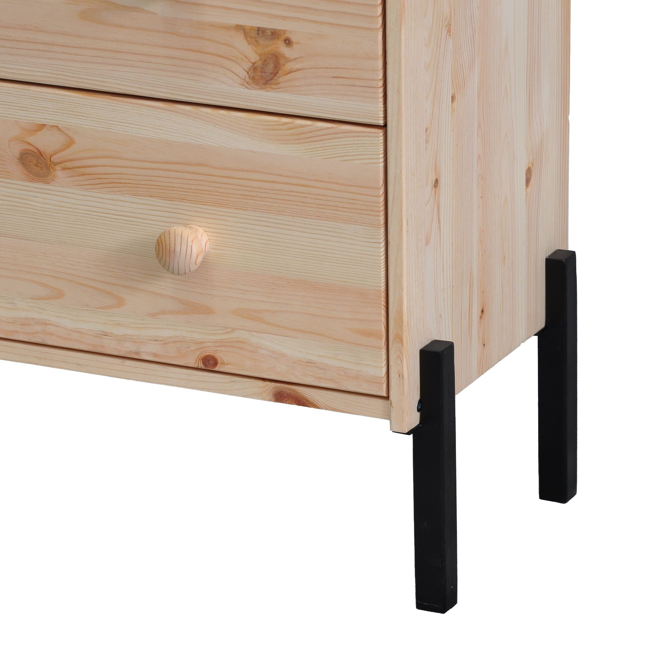 Создайте современный интерьер в стиле лофт, разместив этот деревянный комод с ящиками на железных черных ножках. Благодаря поднятой над полом конструкции, Вам будет легко проводить уборку пылесосом и шваброй под комодом. Это существенно экономит ваше время и упрощает процесс ухода, обеспечивая чистоту и порядок в вашем доме.