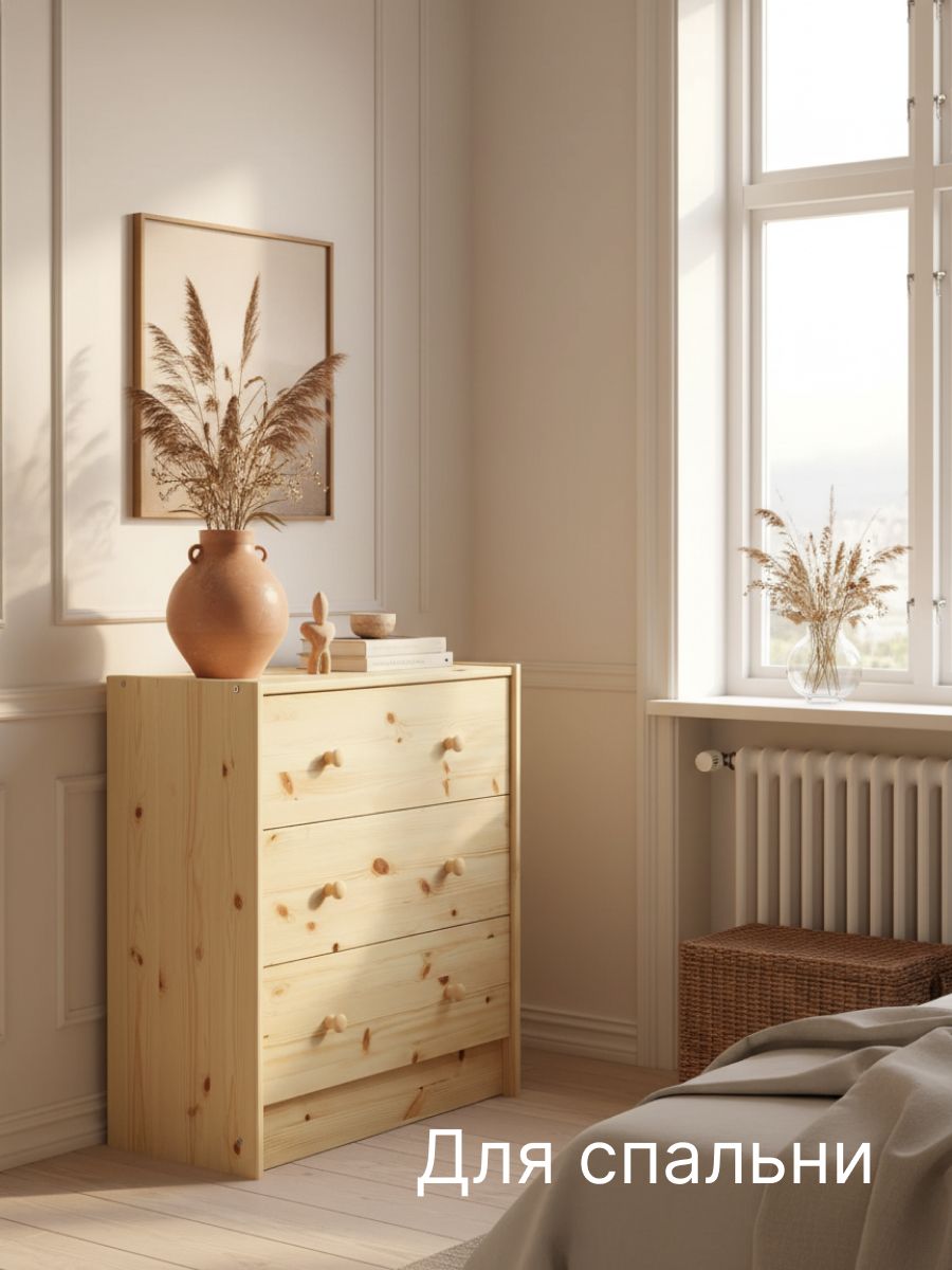 Комод лофт будет отлично смотреться как мебель в прихожую, гостиную, детскую комнату, спальню и ванную комнату. Комод РАСТ изготовлен в классическом скандинавском стиле, обладает компактными размерами и лаконичным дизайном, и поэтому идеально впишется в любую комнату вашего дома: поставьте комод в детскую, чтоб получился замечательный комод для игрушек. Добавьте его в комнату к набору детской мебели. Поставьте его в спальню и получится хороший комод для вещей с ящиками. Может использоваться как прикроватная тумба. Комод легко собирается. Стильный комод из массива сосны подойдет для стиля арт-деко, лофт, бохо, современный, скандинавский, ретро. Для прихожей, ванной комнаты, коридора, спальни, деткой комнаты, балкона, дачи, офиса.