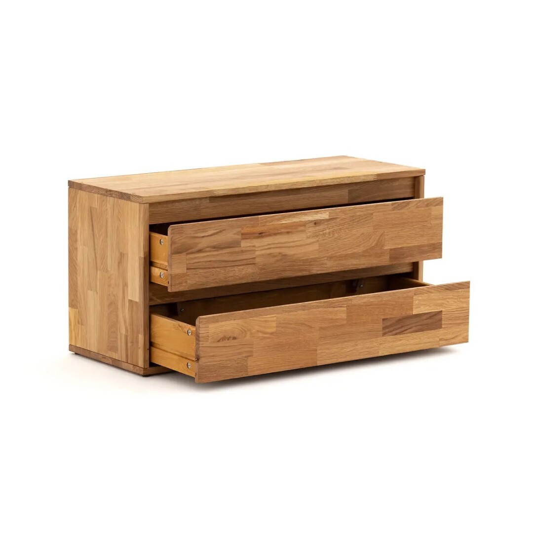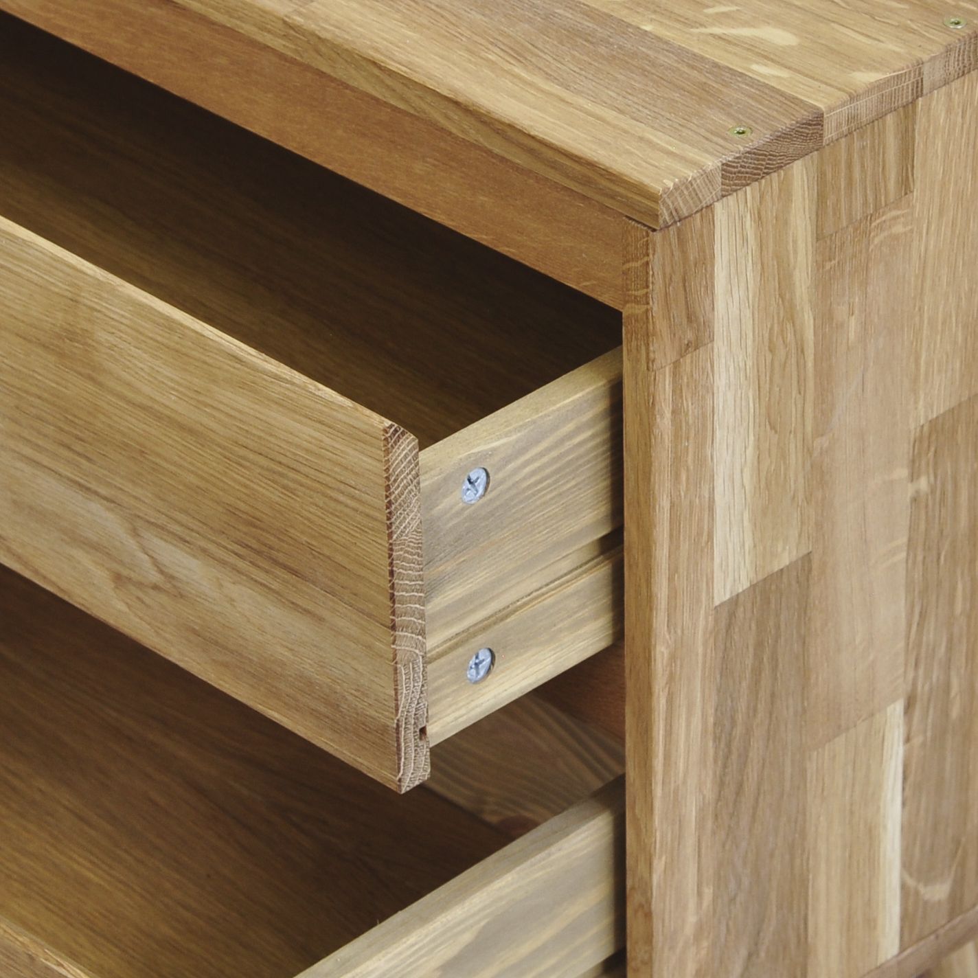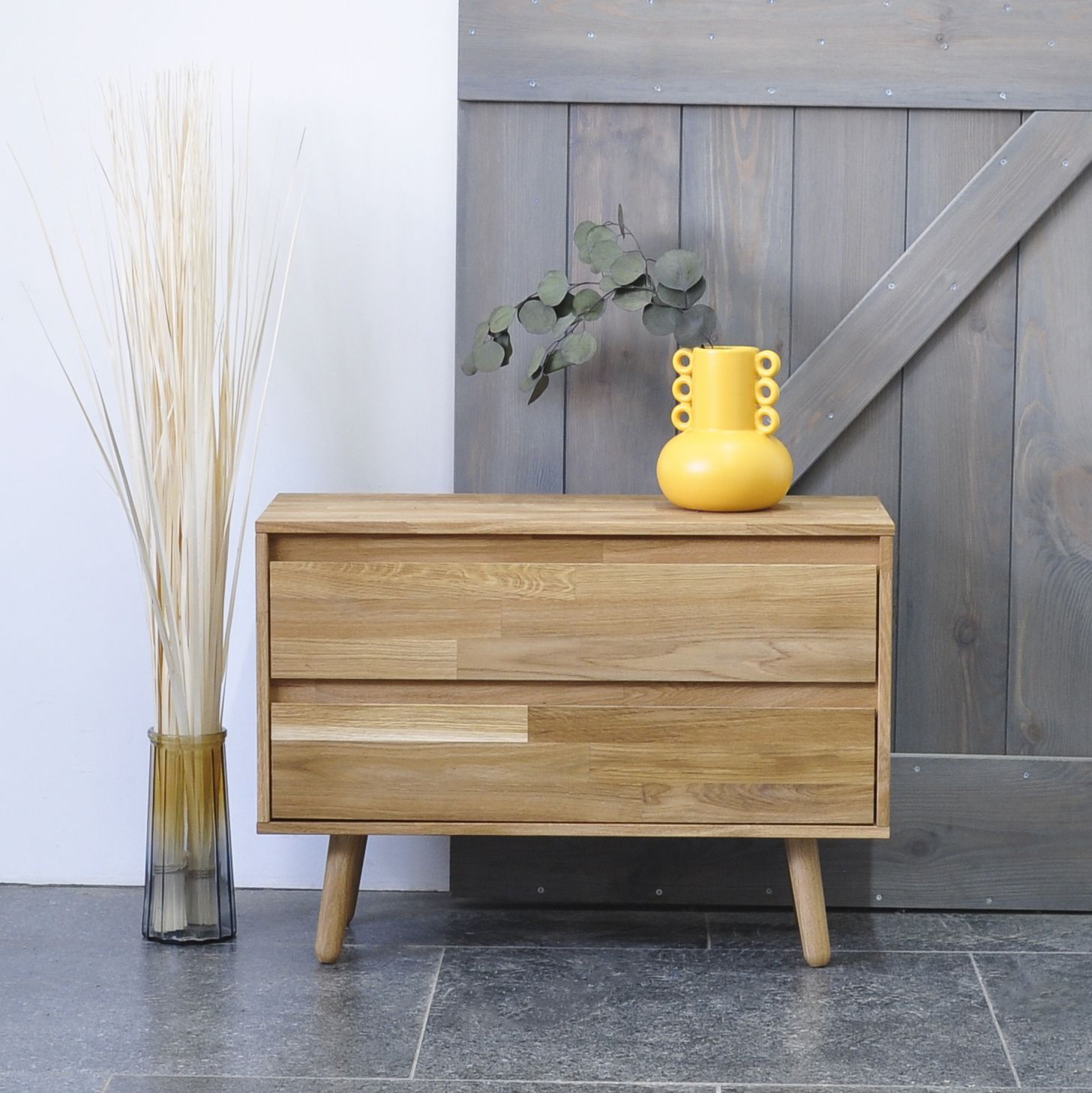 Комод Эдгар с двумя выдвижными ящиками от белорусского производителя ООО "Диприз" изготовлен из массива дуба (стенка задняя комода из ДВП, боковые ящиков из сосны, дно ящиков из фанеры, шпонированной дубом). Своим уникальным дизайном комод создаст в вашей комнате необыкновенную атмосферу тепла и уюта. Отделка комода дуб/масло, цвет натуральный, это означает, что натуральный вид дуба станет важным элементом интерьера вашей гостиной, спальни или кабинета. Этот небольшой дубовый комод можно успешно дополнить модульными полками Эдгар, Благородный вид дуба значительно обогатит ваш интерьер, создаст абсолютно иной вид помещению. Простой дизайн модели, без лишних, ненужных элементов декора и экологичная отделка полностью раскрывают дорогую текстуру дерева. Комод по своему функционалу очень многообразен, он отлично впишется и в домашний и в офисный дизайн. Простота ухода за изделием и его качественный, не стареющий вид будут радовать вас долгие годы.