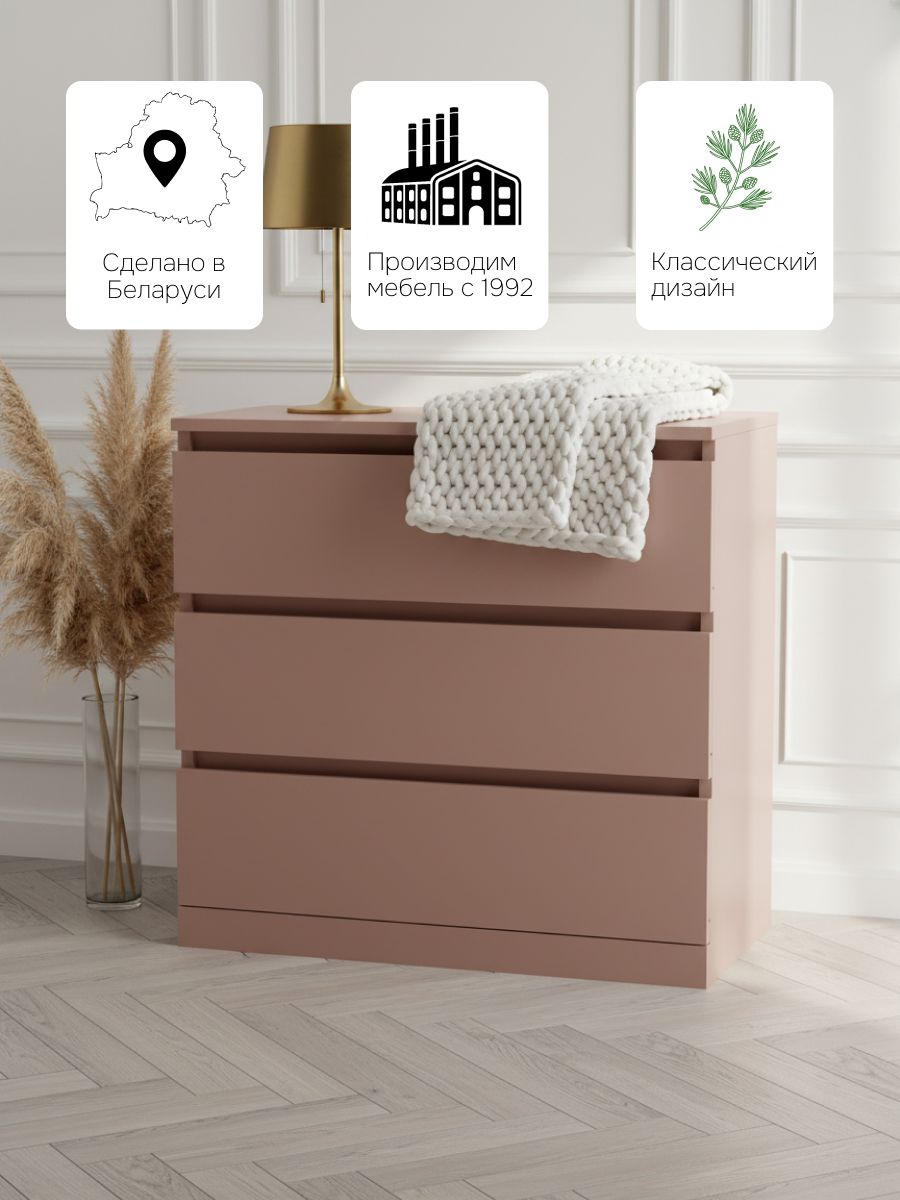Комод изготовлен белорусским производителем "Диприз" из высококачественного ЛДСП. Для задней стенки комода и дна ящиков использовалось ДВП.