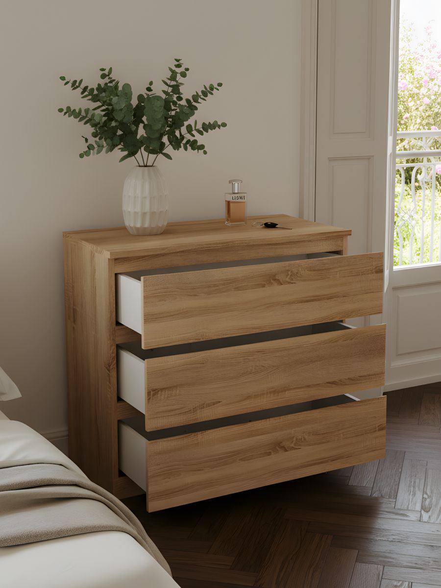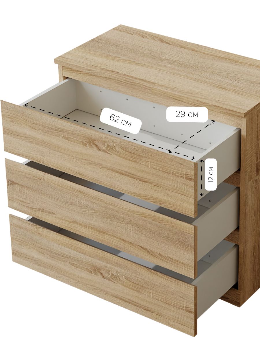 Ящики комода Марм можно использовать для хранения вещей одного типа или тематически разделить их по назначению. Например, верхние ящики использовать под носки, перчатки и шарфы, средние - под футболки и майки, нижние - под пижамы и домашнюю одежду.