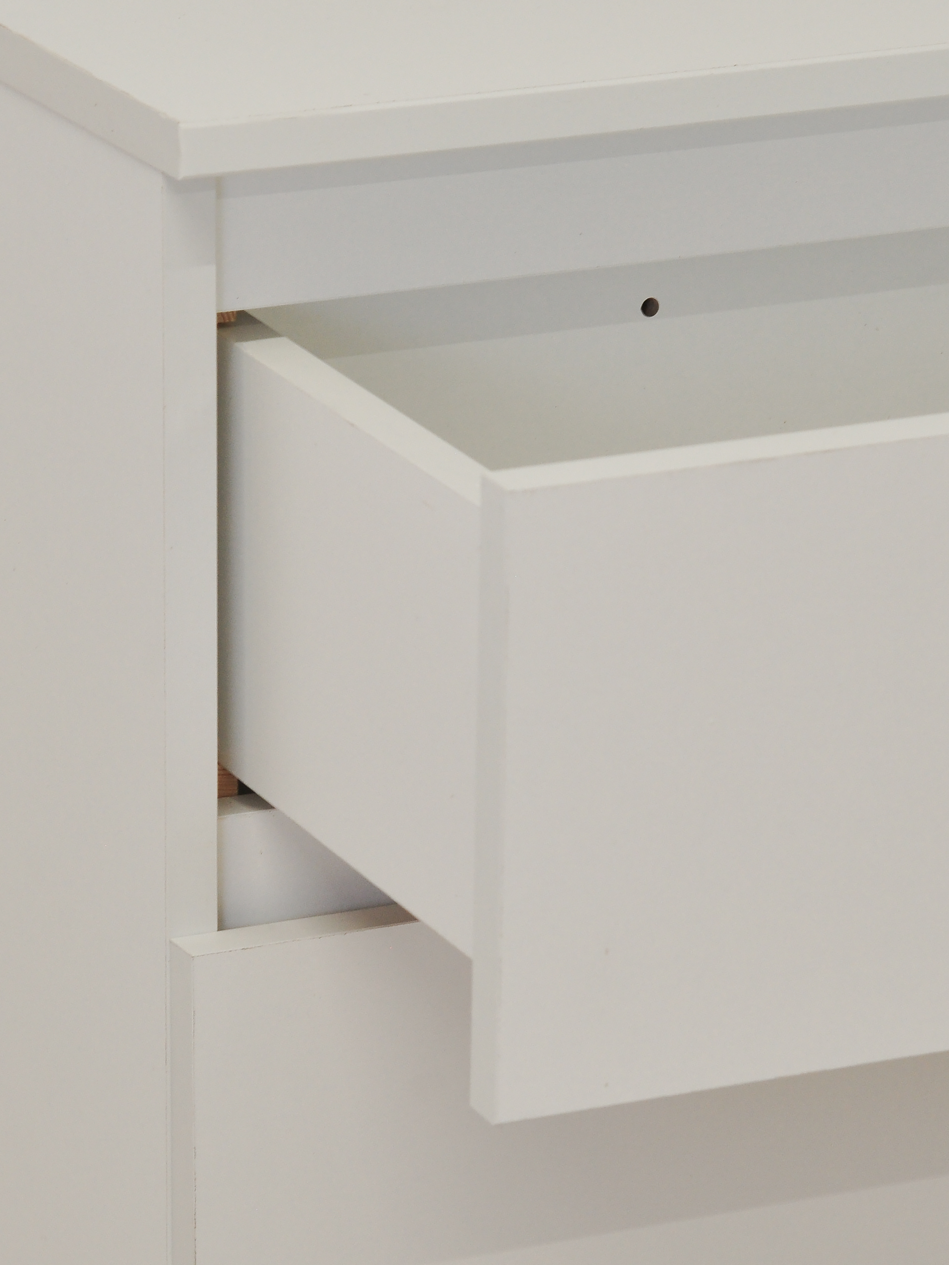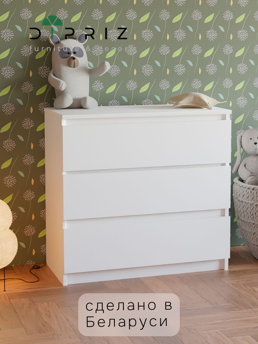 Комод изготовлен белорусским производителем "Диприз" из высококачественного ЛДСП. Для задней стенки комода и дна ящиков использовалось ДВП.