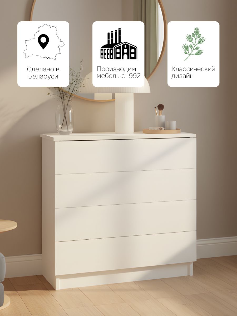 Комод изготовлен белорусским производителем "Диприз" из высококачественного ЛДСП. Для задней стенки комода и дна ящиков использовалось ДВП.