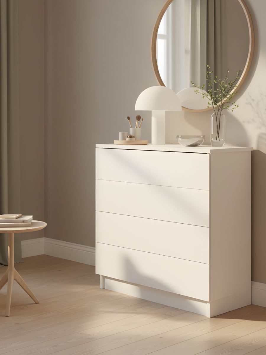 Ящики комода Марм можно использовать для хранения вещей одного типа или тематически разделить их по назначению. Например, верхние ящики использовать под носки, перчатки и шарфы, средние - под футболки и майки, нижние - под пижамы и домашнюю одежду.