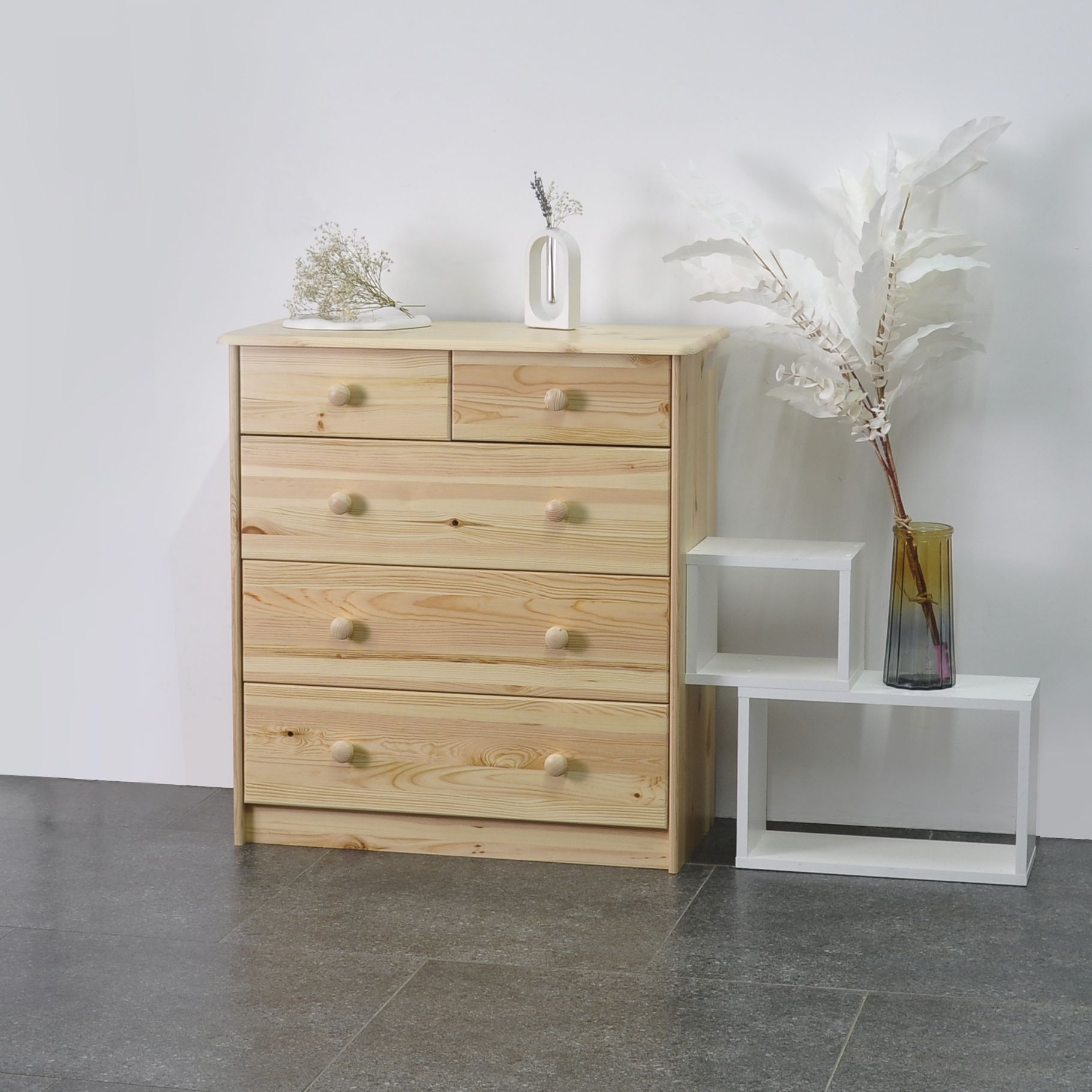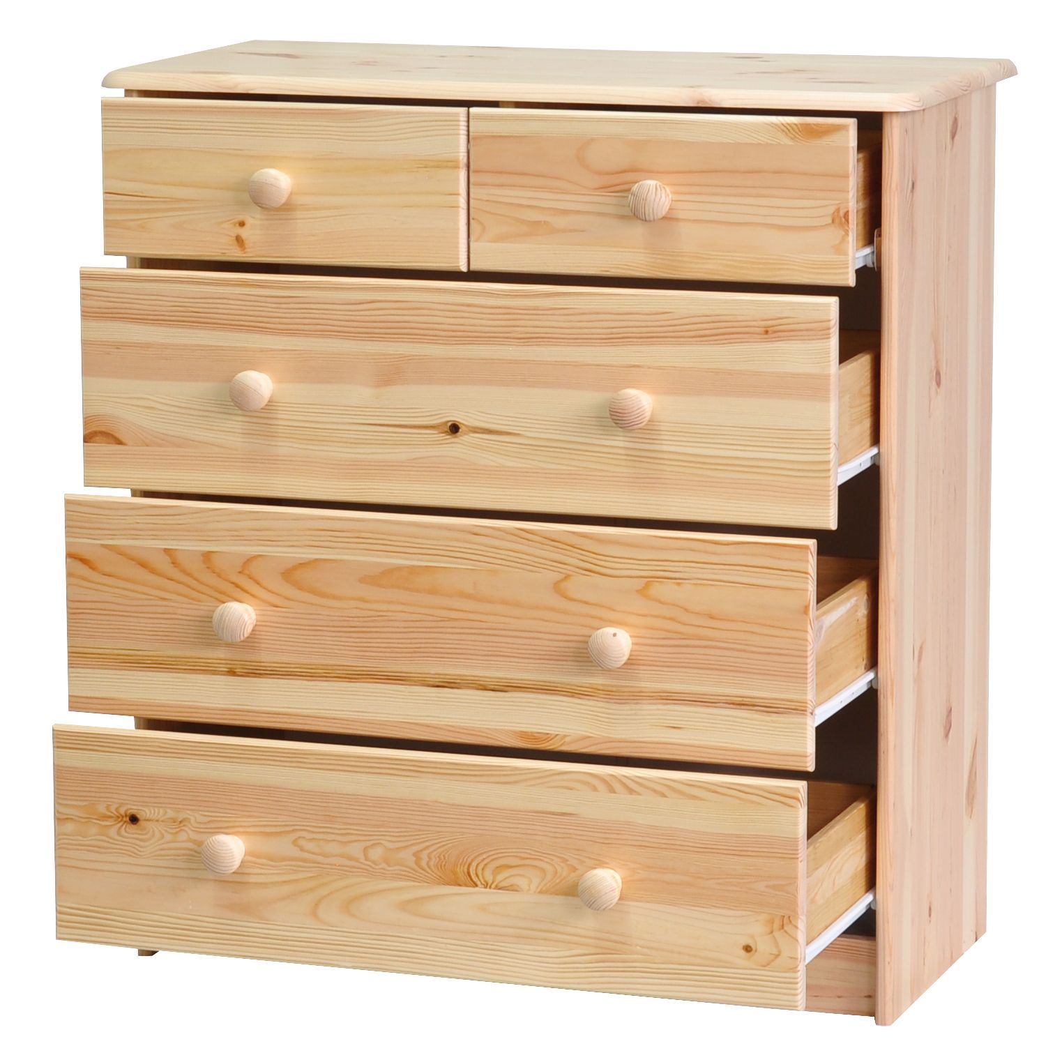 Комод изготовлен из массива сосны, задняя стенка и низ выдвижных ящиков из ДВП Комод легко собирается. Инструкция прилагается. Гарантия - 24 месяца.