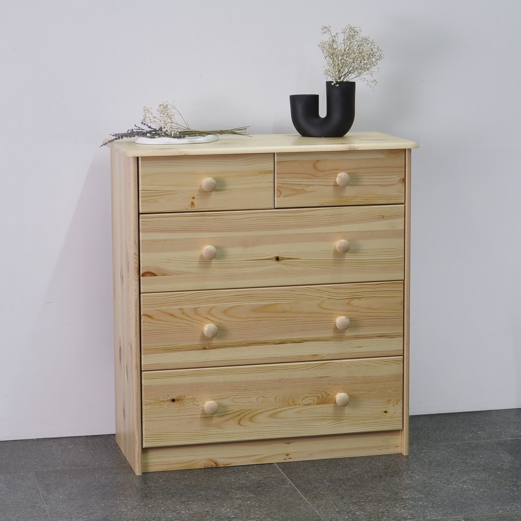 Комод "Хаба" изготовлен из натурального дерева с использованием экологически чистых отделочных материалов. Комод полностью готов под отделку или покраску. Поверхность тщательно отшлифована и выглядит богато и приятна на ощупь. Изделия сохраняют максимально естественный внешний вид. Главное достоинство этого вида отделки - это видимый признак благородного происхождения материала. Неоднородность текстуры сосны с богатством цветовых переливов не скрывается отделкой и подчеркивает всю красоту натурального дерева. Классический дизайн комода хорошо подойдет для помещений с многими стилями интерьера, а большое количество ящиков создаст достаточно места для хранения самых различных вещей. Комод будет хорошо смотреться в прихожей, гостиной и спальни.