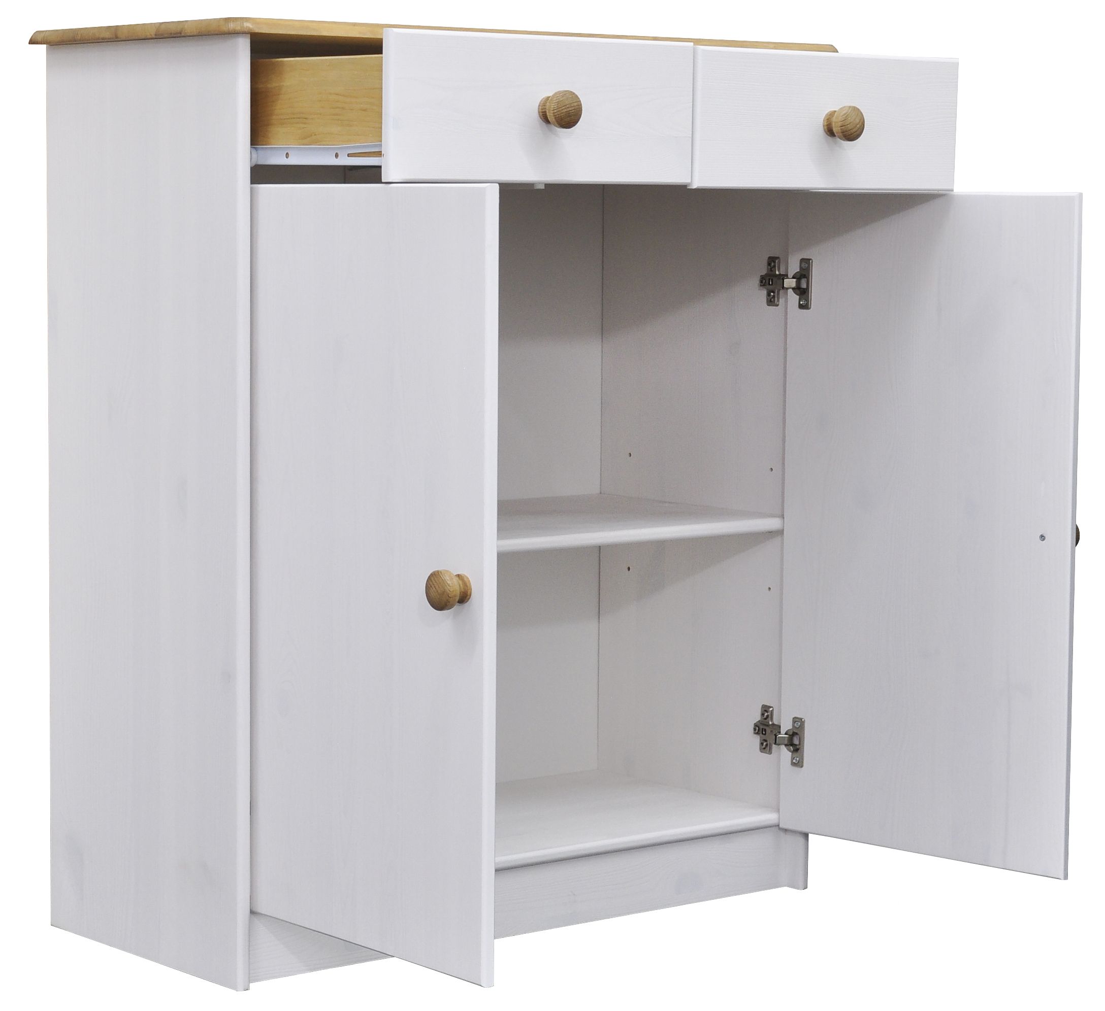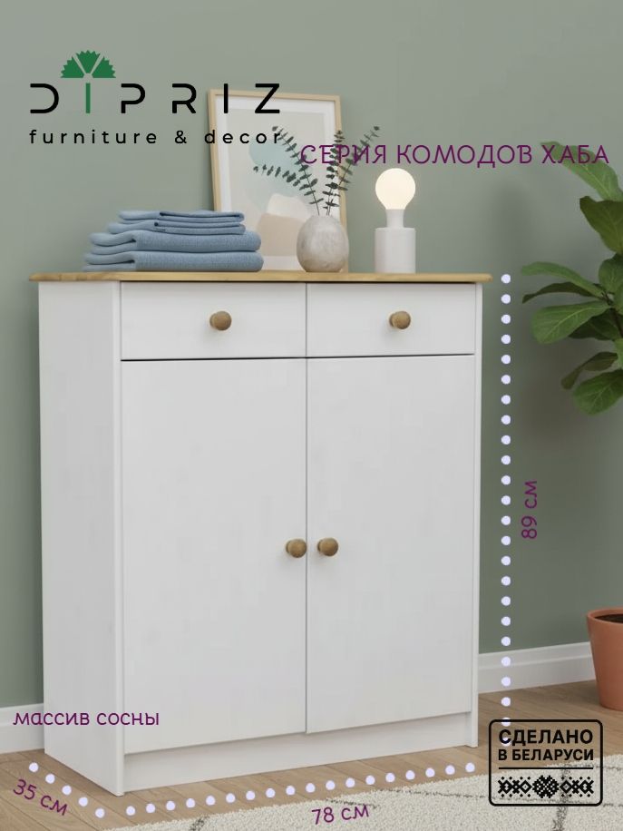 Комод Хаба из красивого цельного дерева привнесет атмосферу домашнего уюта. Изделие привлекает к себе внимание видимой структурой изысканных поверхностей. Дизайн придерживается современного минималистичного вида. Изысканный модуль состоит из двухстворчатого отделения и двух ящиков для удобного хранения мелочей. Вид отделки белый/антик.