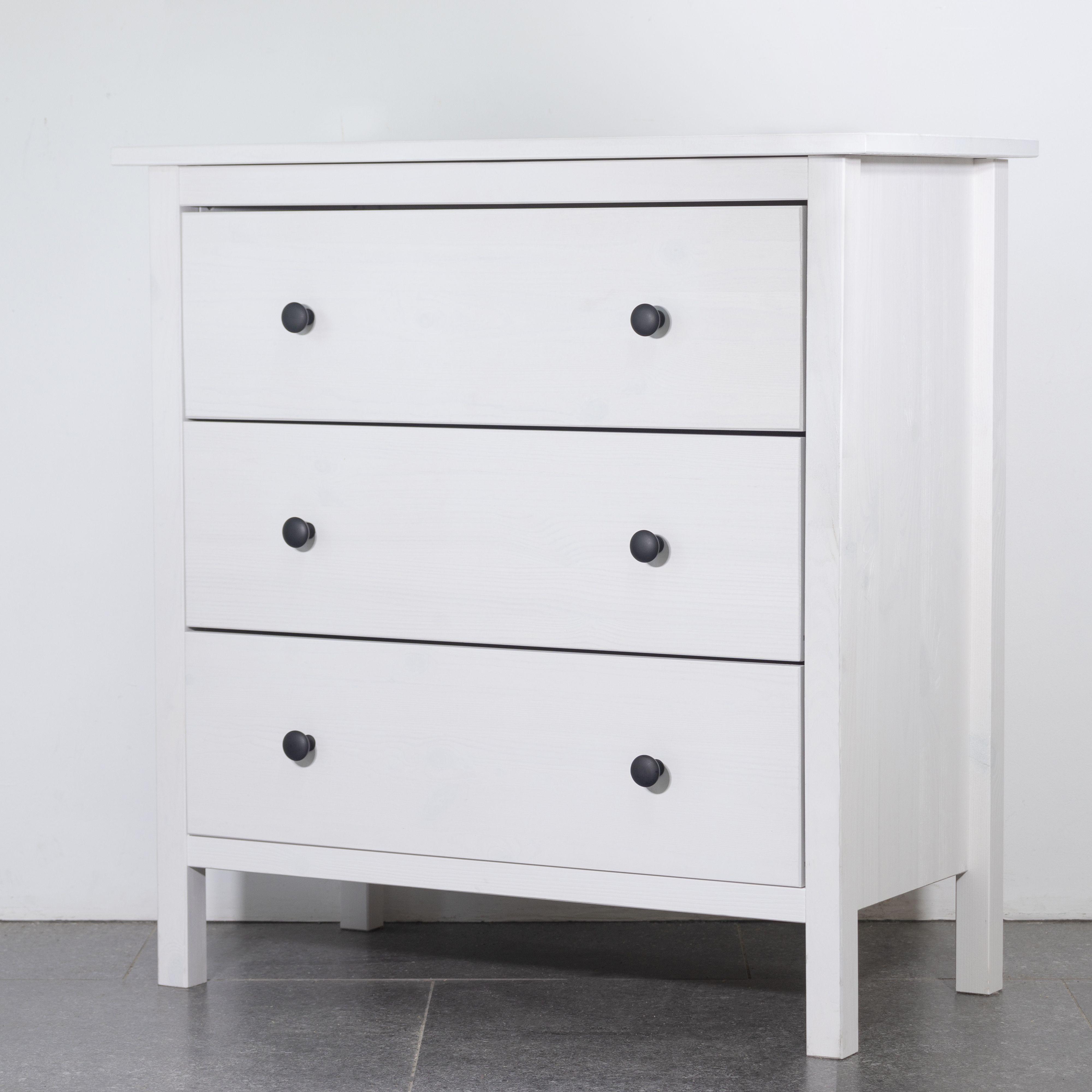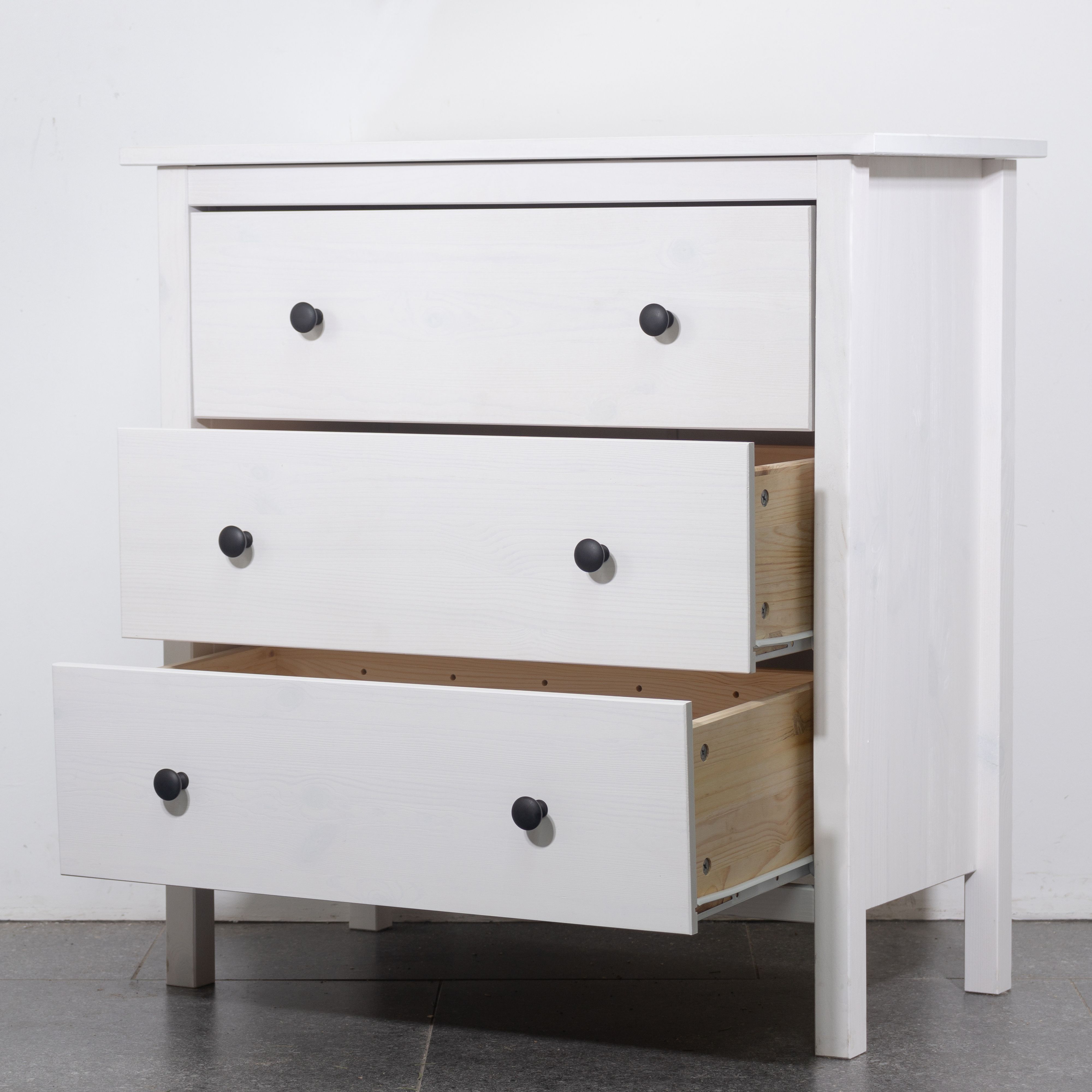 Деревянный комод для одежды покрыт белым воском, это очень экологичный и безвредный материал. Все поверхности прошлифованы и готовы к эксплуатации. Комод белый легко собирается. Дополнительно можно заменить ручки, чтобы еще больше изменить внешний вид изделия. Благодаря своему компактному дизайну его легко превратить в широкий комод, поставив несколько комодов вместе. Из нескольких комодов можно получить вместительный комод для вещей под телевизор. Комод икеа Хермес идеально подойдет для творческих людей, которые желают создать уникальный дизайн своего дома.