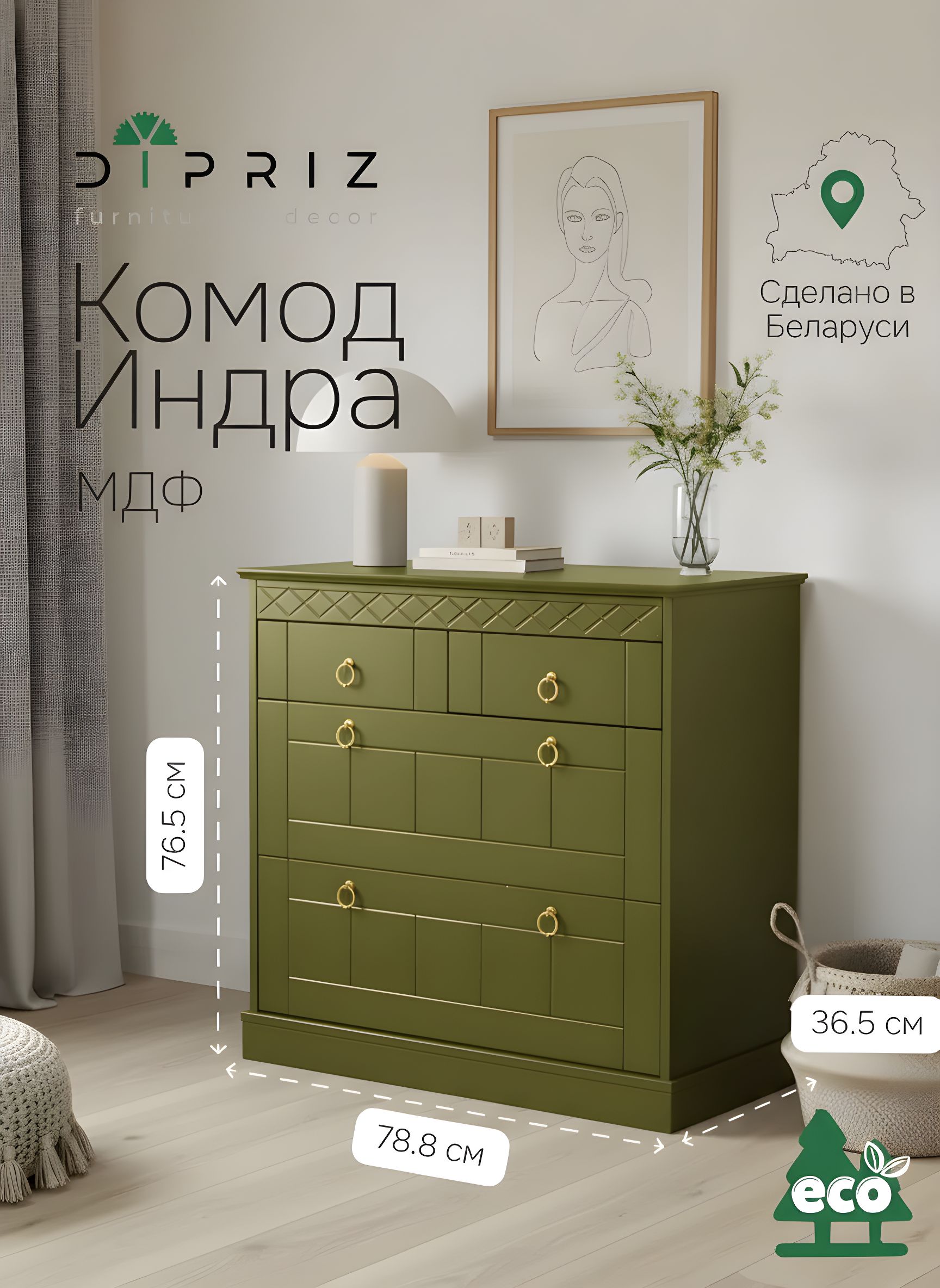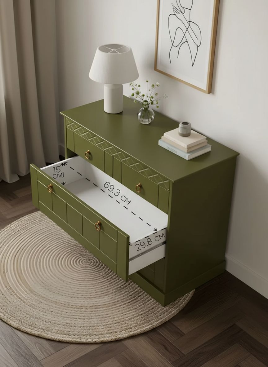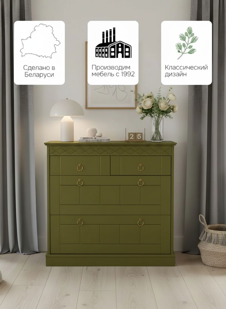 Комод "Индра" | Оливковый, 4-х ящичный