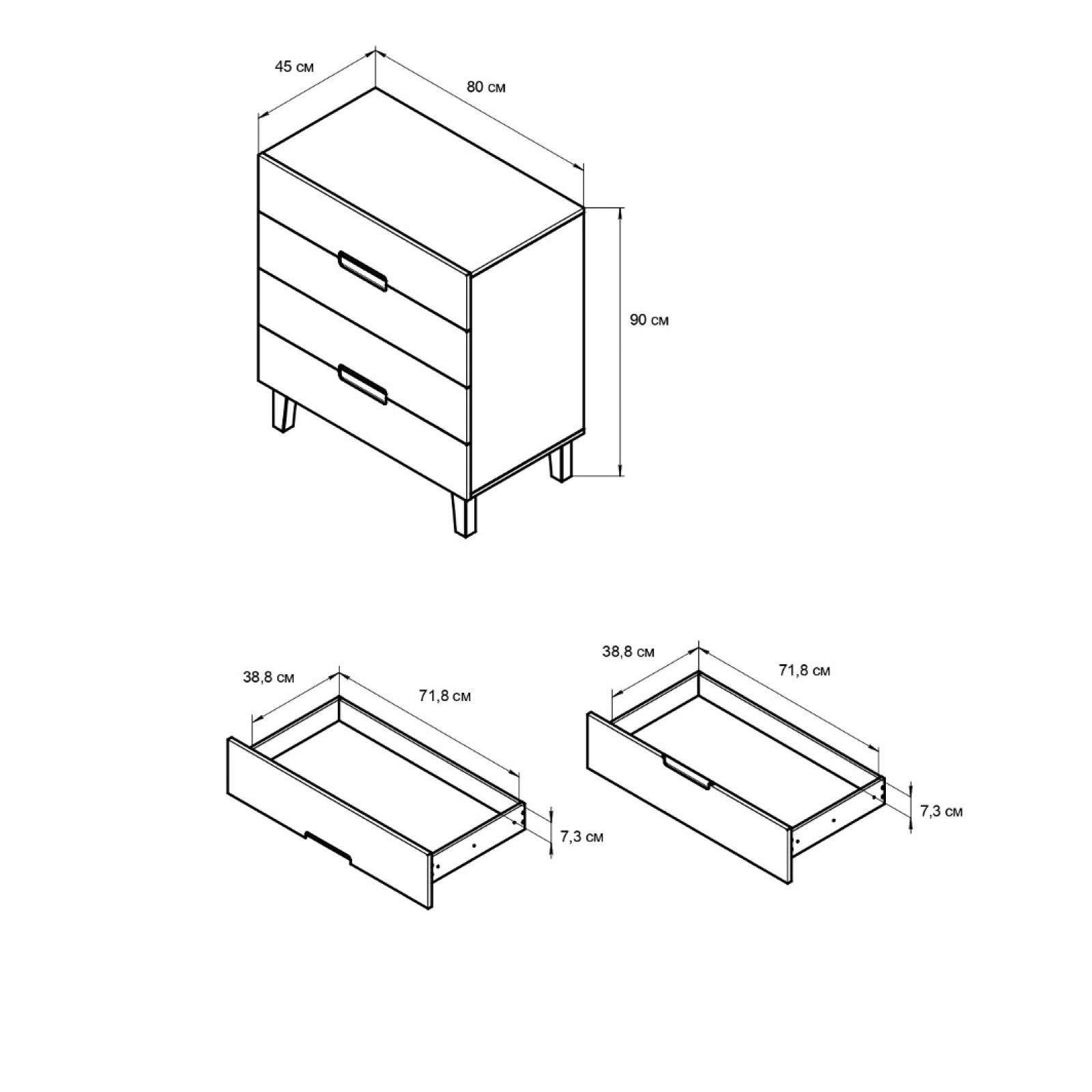 Комод с 4-мя ящиками Чек - исключительный выбор для вашей спальни и дома! Создайте уютную атмосферу и улучшите функциональность вашего дома с помощью прикроватного столика с 4 ящиками. Он обеспечит удобное хранение ваших вещей, которые необходимы под рукой, а также добавит элегантность и стиль вашему интерьеру. С первого взгляда на наш прикроватный столик вы поймете, почему он является востребованным предметом мебели. Он отличается своей функциональностью и прекрасно впишется в любой интерьер. Прикроватный столик Чек на 4 ящика - инновационное решение для ограниченного пространства. Благодаря своим компактным размерам, он идеально впишется даже в самую маленькую комнату. В производстве прикроватного столика мы использовали только качественный материалы: ножки столика сделаны из натуральной березы, что говорит о их прочности и надежности. ЛДСП и МДФ очень качественное и проходит 3 этапа контроля на производстве, задняя стенка и дно столика выполнено из ДВП, благодаря чему покупатель получит идеальный прикроватный столик, который будет радовать долгие годы. Сзади столика есть отверстие для крепления к стене, что обеспечивает дополнительную устойчивость тумбы. Ножки крепятся через полик на винт 7*50, по 2 штуки на ножку. Ящики выдвигаются полностью. Направляющие шариковые, телескопические полного выдвижения. Максимальная нагрузка на ящик - 5 кг, на крышку - 30 кг. Доставляется в 2 коробках габаритами: 1/2 - 990х500х100 - 25кг, 2/2 - 950х270х140 - 16кг.