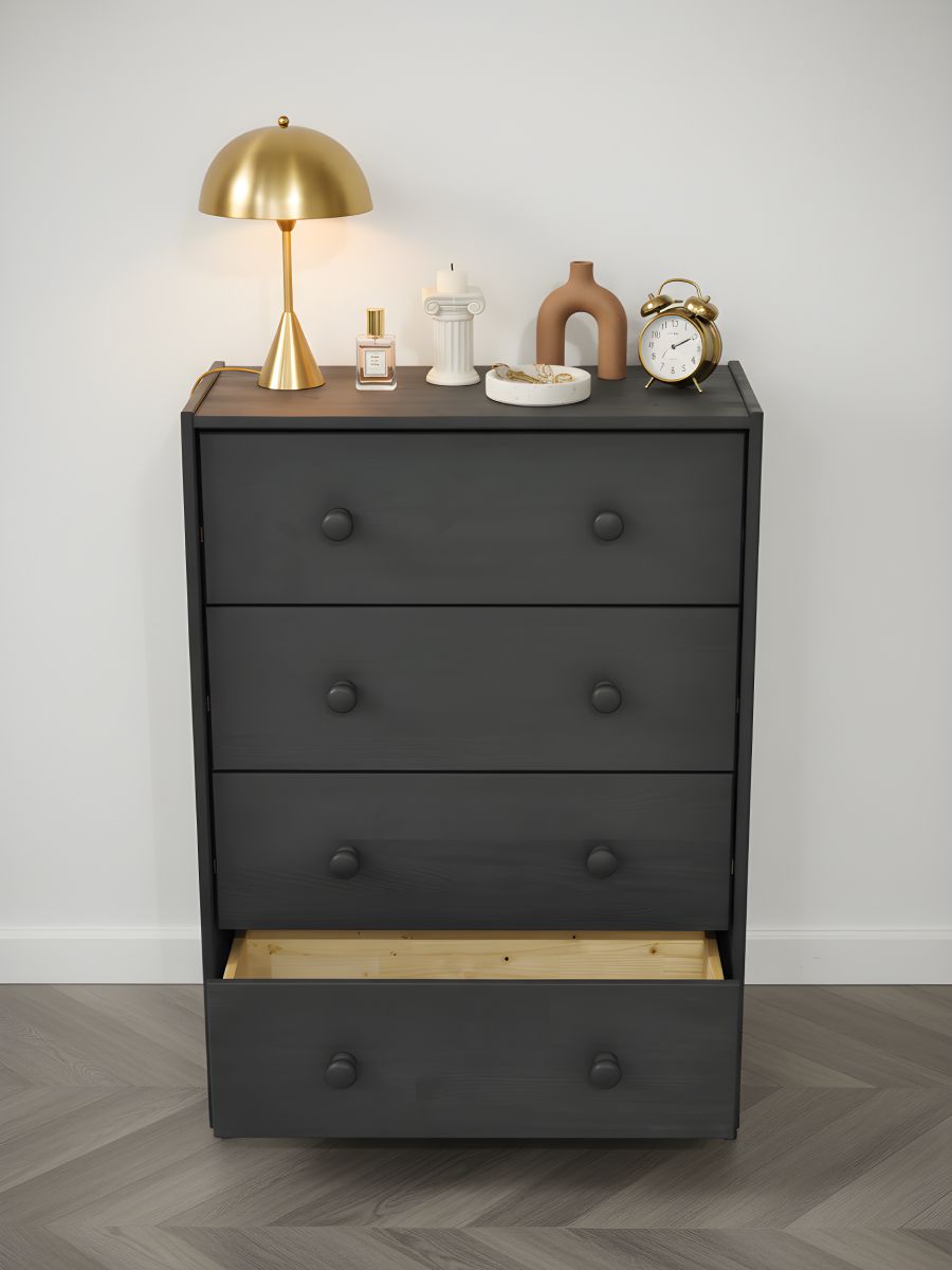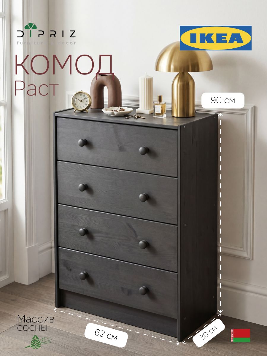 Серый комод Раст – это современное сочетание стиля и функциональности. Минималистичный дизайн и просторные ящики делают его идеальным выбором для хранения вещей и создания стильного интерьера. Стильный комод из массива сосны отлично впишется в комнаты современного и скандинавского стиля, бохо, лофт, минимализм. Подчеркните уникальность и создайте свое уютное домашнее пространство с нашей мебелью. Мы заботимся о Вашем удобстве!