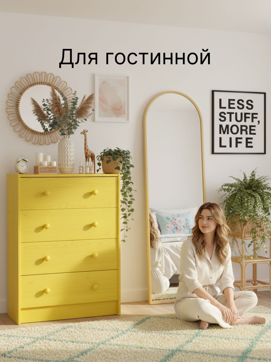 Ищете стильный и функциональный комод? Желтый комод с ящиками идеально подойдет для хранения и организации вещей в прихожей и гостиной, спальне, детской и ванной комнате. Деревянный комод для вещей позволяет удобно и компактно разместить в одном месте белье, одежду, обувь, аксессуары. Поэтому он может использоваться как комод для обуви или как комод для игрушек.