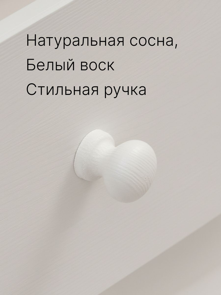 В качестве отделки комода для вещей используется белый воск. Преимущества данного покрытия в том, что просматривается текстура дерева. Комод для одежды легко собирается. Дополнительно можно заменить ручки, чтобы еще больше преобразовать внешний вид изделия. Белый комод для одежды Раст идеально подойдет для творческих людей, которые желают создать уникальный дизайн своего дома.