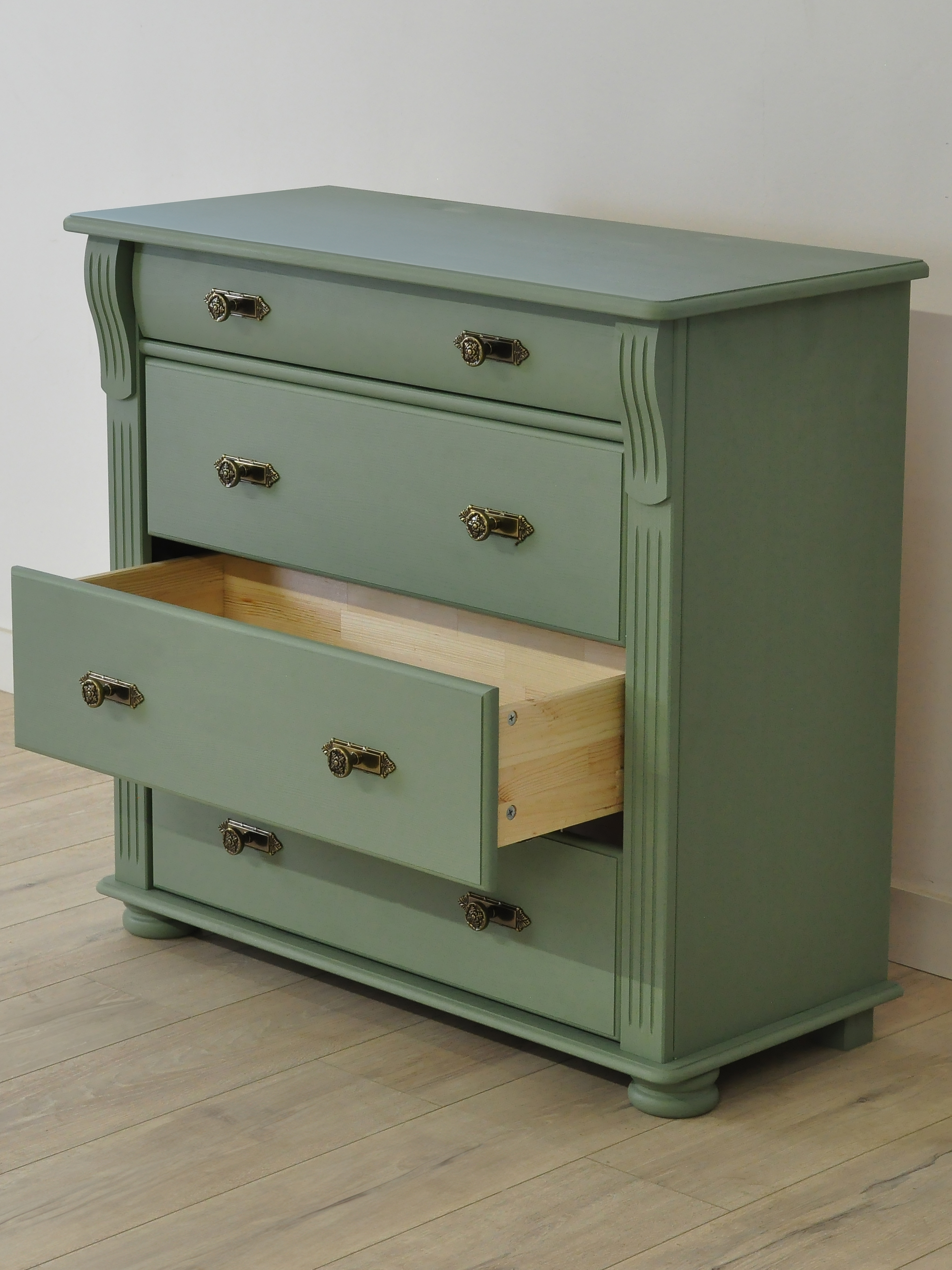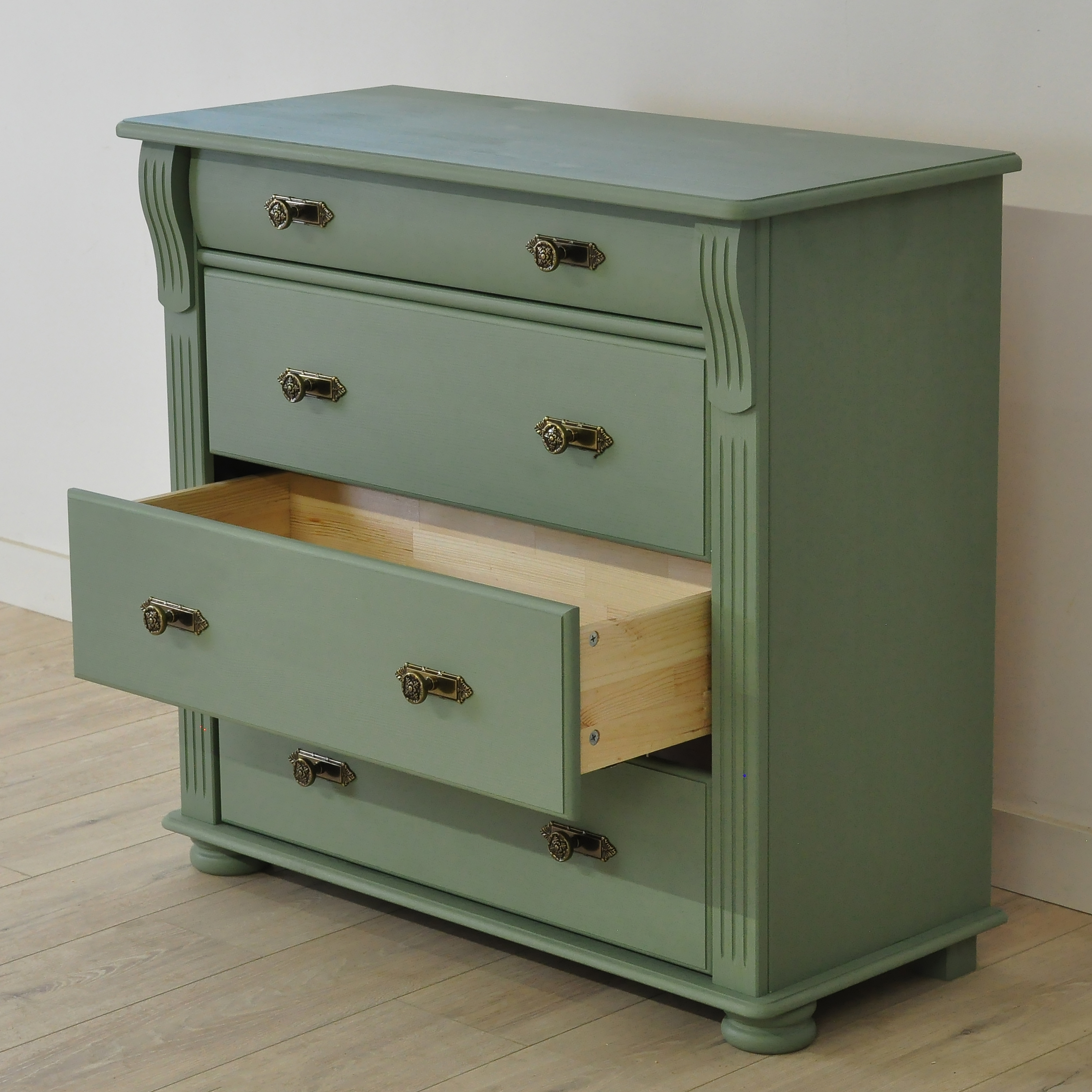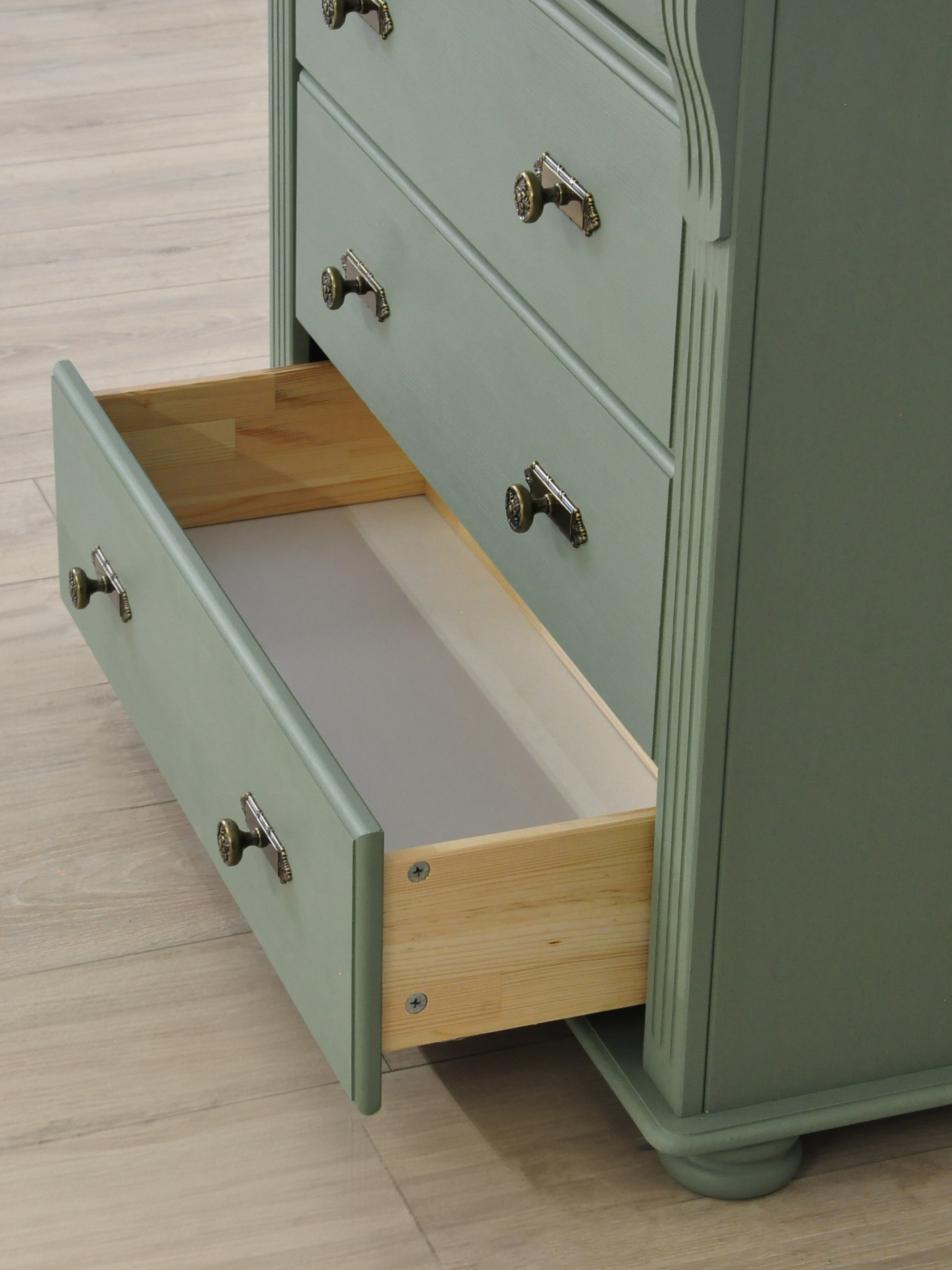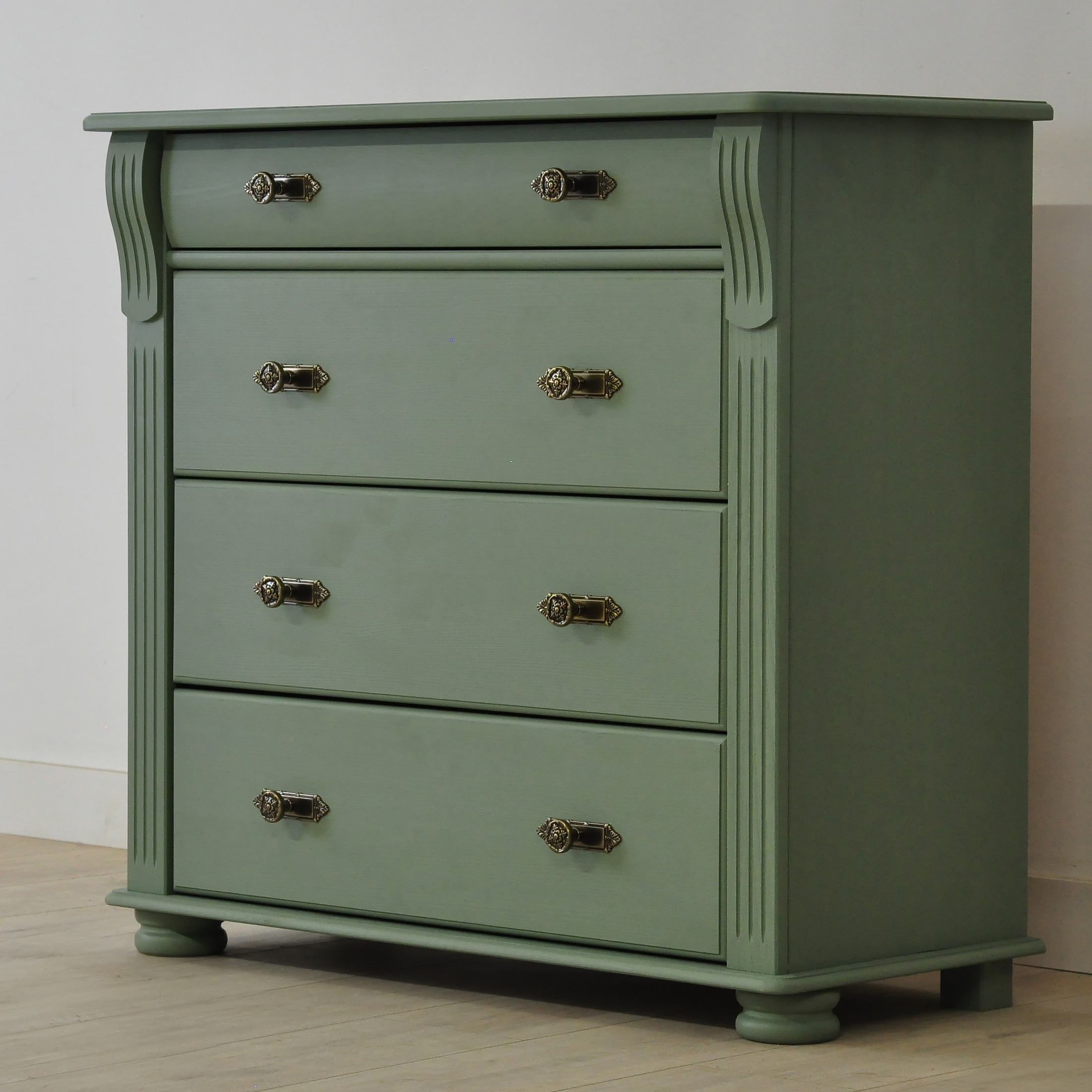 Зеленый комод Сюзанна с 4 ящиками привнесет нотки элегантности классического стиля и домашнего уюта в Ваше пространство.