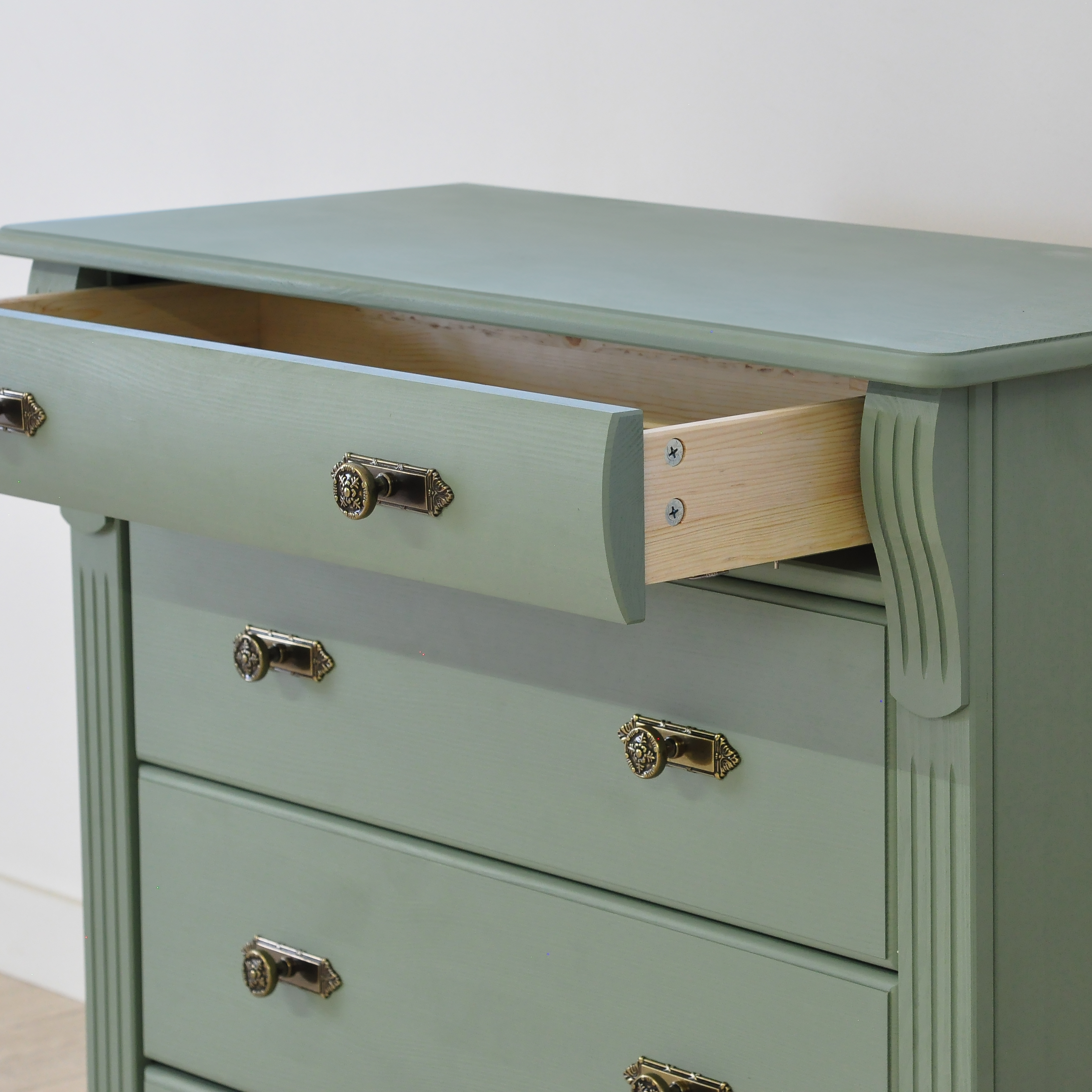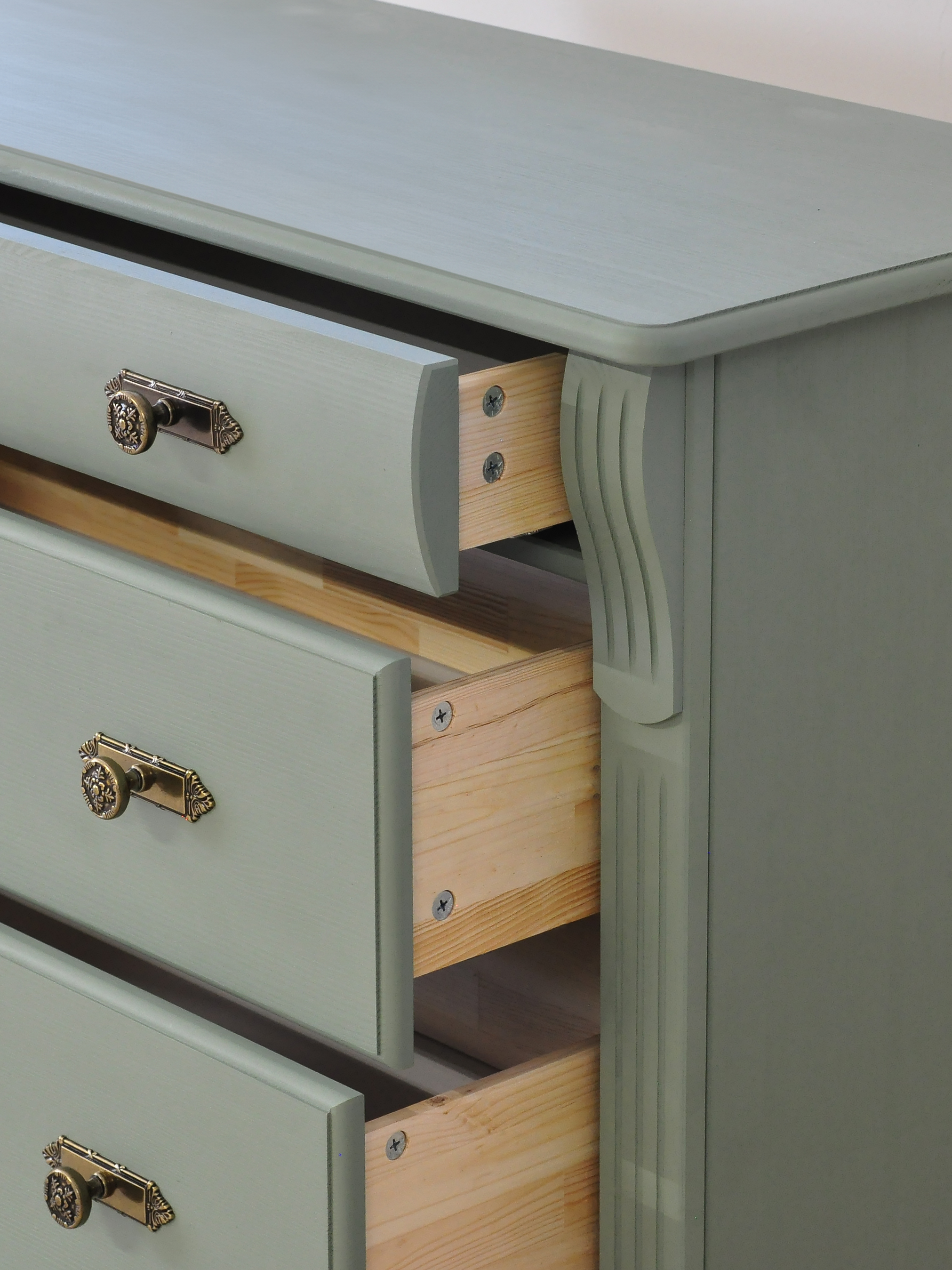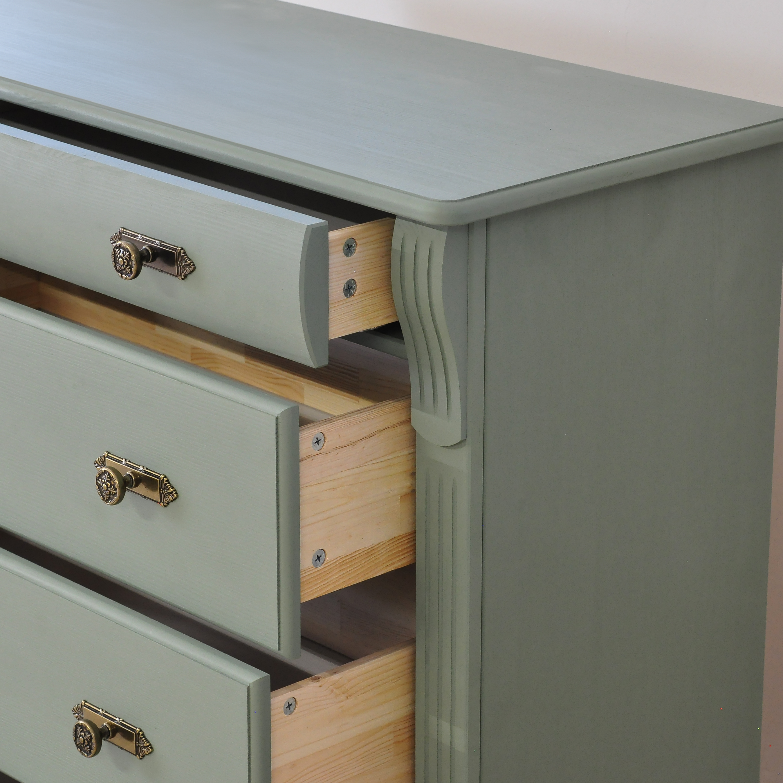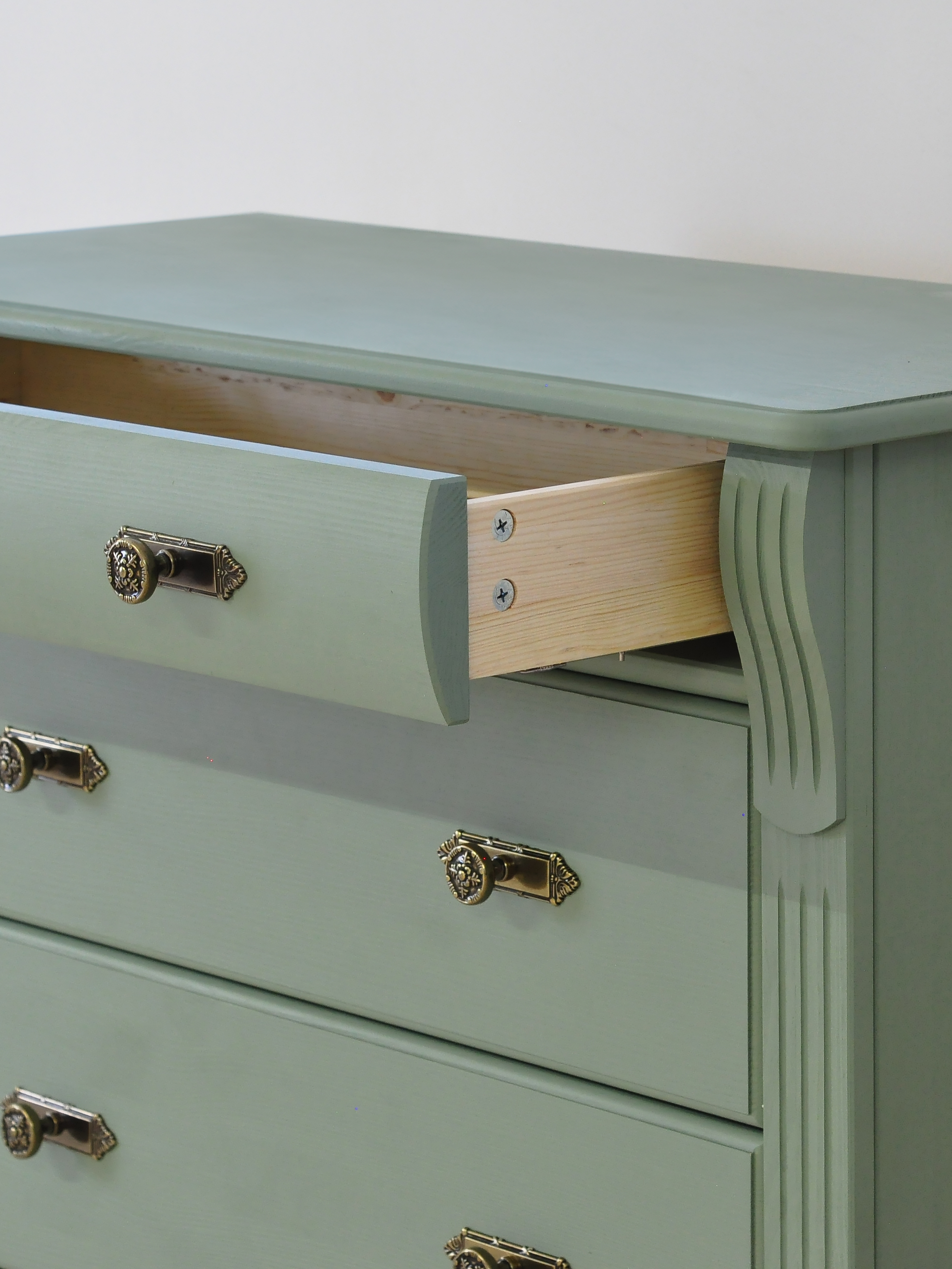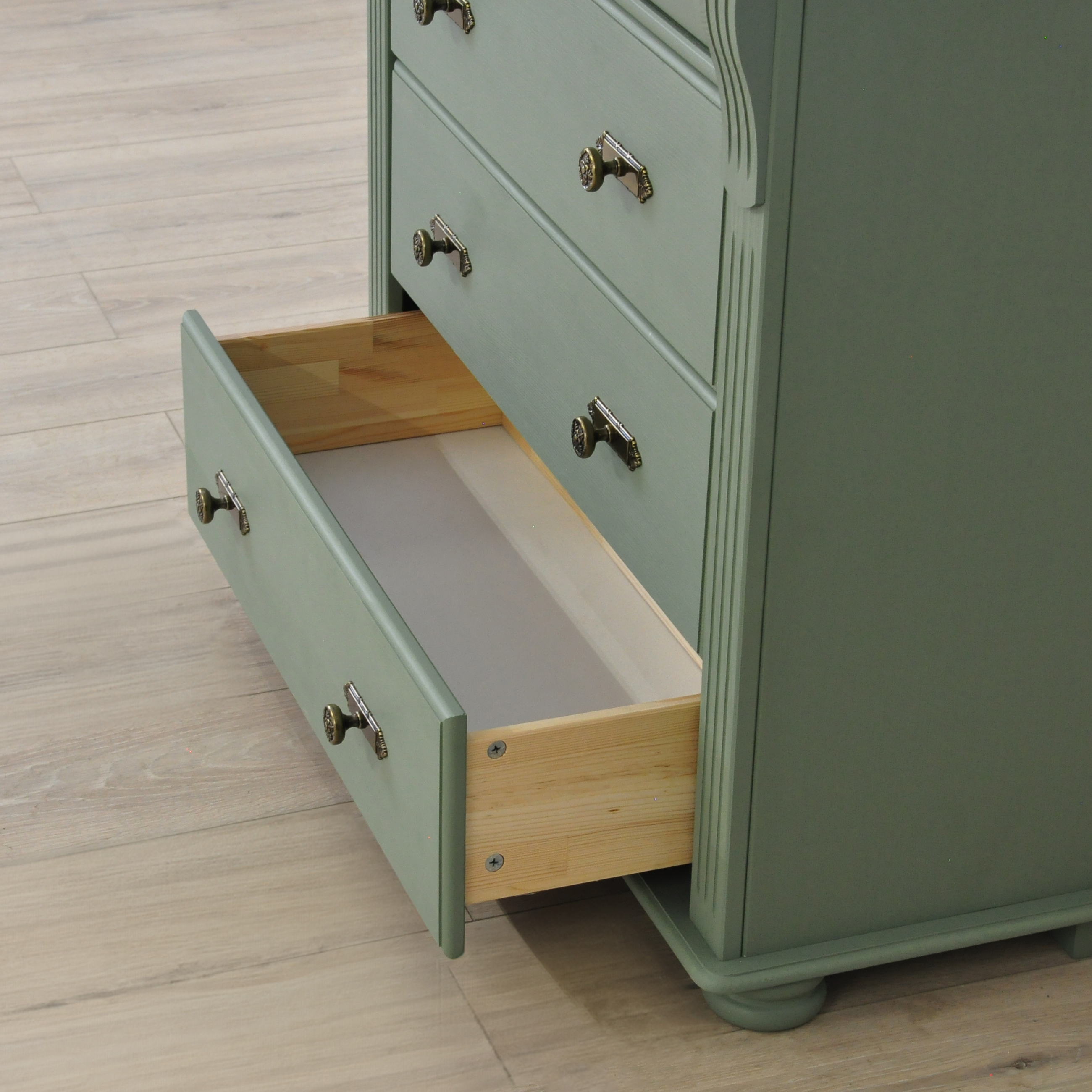 Зеленый комод Сюзанна с 4 ящиками привнесет нотки элегантности классического стиля и домашнего уюта в Ваше пространство.