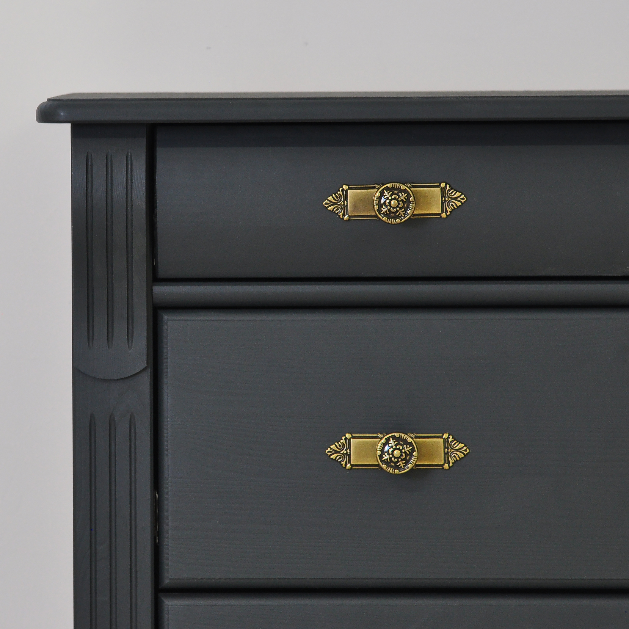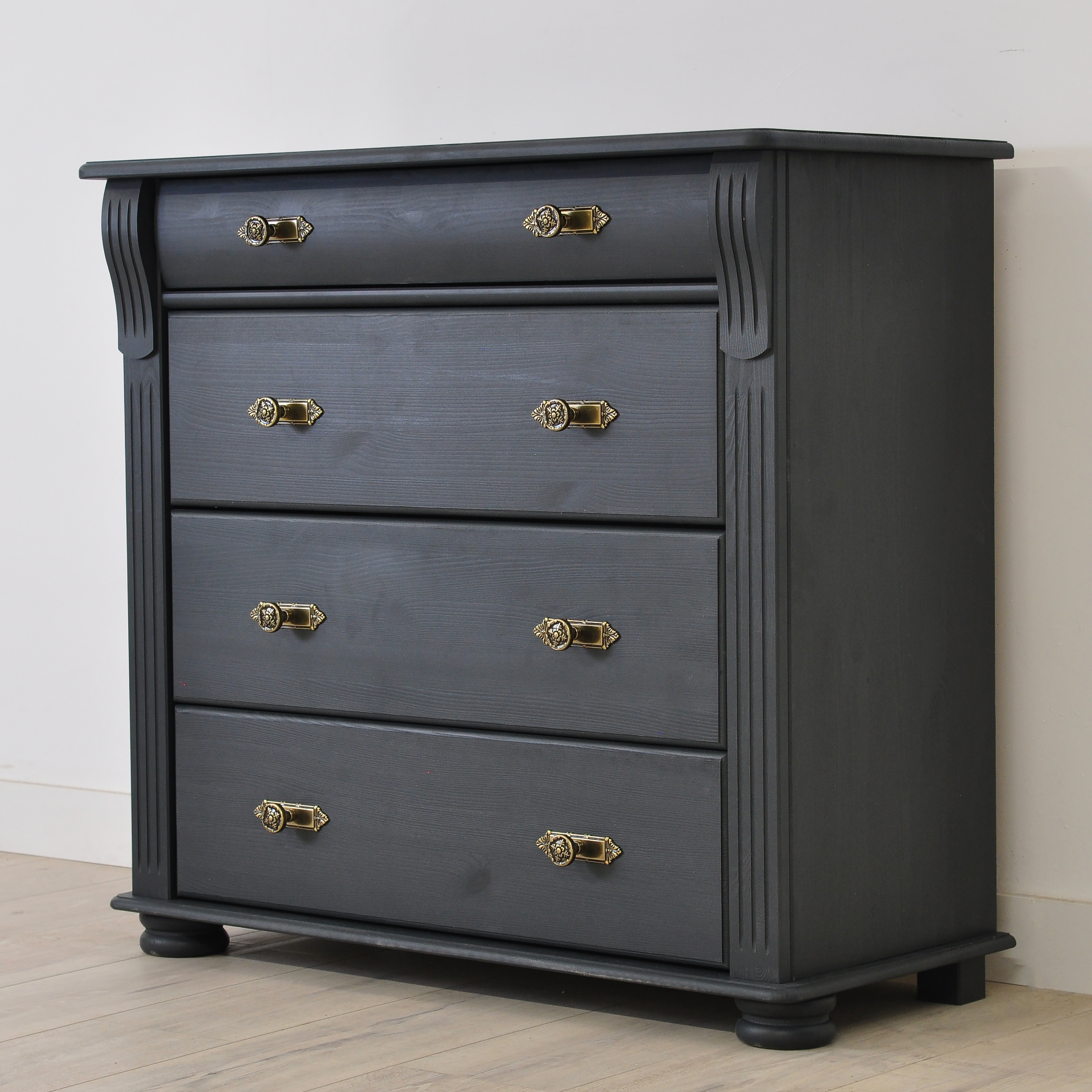 Серый комод Сюзанна с 4 ящиками привнесет нотки элегантности классического стиля и домашнего уюта в Ваше пространство.