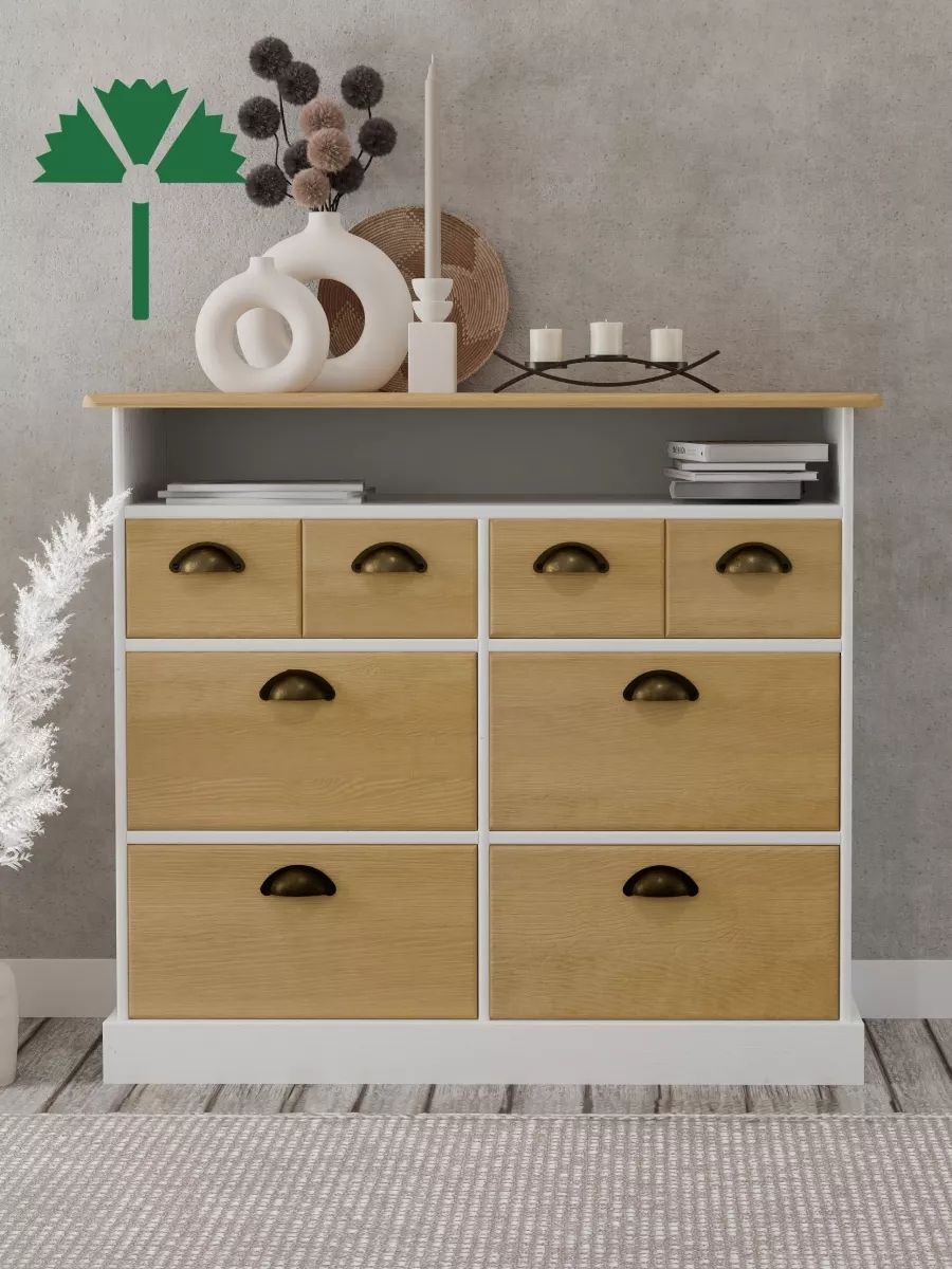 Стиль ПровансКомод выполнен в классическом стиле Прованс, который славится своей элегантностью и уютом. Отделка белым воском придает корпусу свежий, светлый вид, а бейц на фасадах подчеркивает текстуру древесины и добавляет глубину и теплоту. Такое сочетание отделок создает изысканный и гармоничный образ, делая комод не только функциональным элементом мебели, но и стильным акцентом в интерьере.Особенности дизайна: